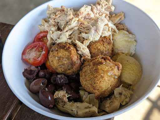 My typical go-to is the Mediterranean Bowl. The falafel is always fried up well with that classic middle-eastern seasoning. Crunchy on the outside and well maintained on the inside. The veggies taste fresh. The rice is fine, but probably there's too much of it. The hummus is nice and traditionally prepared with good flavor and texture. The highlight of the dish is the whipped feta, which is a really unique take on delicious cheese and gives a fabulous tartness to the dish. I usually add the grilled chicken as well, for extra protein, and that is quite good. I once changed it up and ordered the smoked pulled chicken instead - that was just okay. It lacked any smokey flavor. I'll stick with the grilled chicken going forward.
