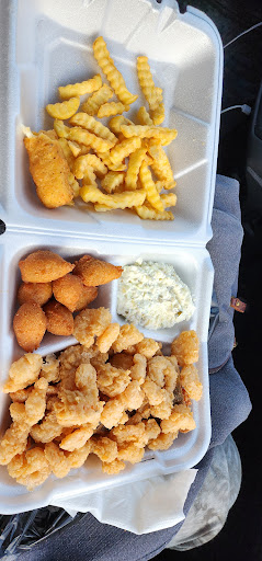 Read moreThis is a quaint, local eatery housed in a single-wide trailer with a screened front porch. With a total of 4 plastic picnic tables, this is flipflops and cutoffs attire dining. Most of the business we saw transacted were locals who called ahead and placed their orders. Being tourists, we waited 30+ minutes for our small calabash shrimp dinners. But, oh! It was worth it!!! Fries were thick crinkle-cut style, and a bit tasteless, the hush puppies were teaspoon-sized sweet treats perfectly fried, and the slaw was a chopped, pickle version that had good flavor. The mound of shrimp (mediums, I think), were bigger than a quarter, smaller than a half dollar, and lightly breaded- Calabash-style. Just delicious! I can usually finish a small order of fried shrimp and fixings, but I've enough left over for a light lunch tomorrow. And it was only $16.99! What a deal!!! They're only open Thursday thru Sunday, but we will definitely be back...to pick up our next...