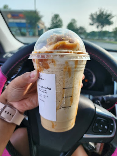 Read moreWAIT TIME: Let me preface this by saying that I don't frequent Starbucks...I go once every blue moon. That being said, unless I'm really lucky, I get my drink in under 7 minutes anytime I do go. Here, I was here for 30 minutes, precisely; which, I think is ridiculousness. If I've been lucky and this is "normal," disregard this portion. QUALITY: I've been getting the Caramel Ribbon Crunch, lately. Pic 1 is what I received from this place (& that is AFTER I said it looks vastly different, and they added extra caramel). Pic 2 is what I normally receive from another Starbucks. In comparing the two, I think they gave me a regular Caramel Frappuccino insert eye roll. On top of that, the one I got from here (Pic 2) was liquid-y and very "white." Which indicates to me that there was a lot of milk/cream used, & much less coffee and ice. I know that Pic 2 has more vibrance from the sun, but trust me, it was still more brown (coffee balanced). CUSTOMER SERVICE: The young lady helping me was extremely nice, apologized for the wait, and even offered to remake my drink. I didn't wanna be a hassle, so I said no, but she was nice about it.