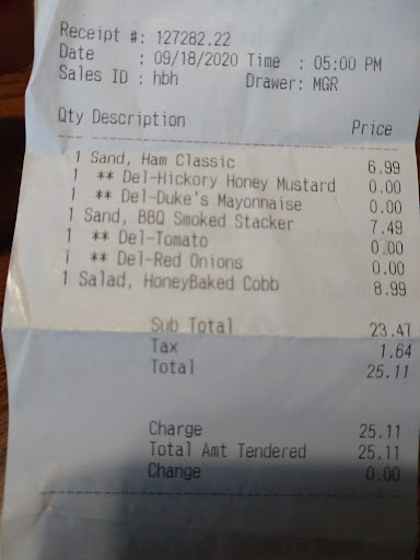 Read moreDisappointed. Wanted to take home a ham, but none was available at noon. Ordered a sandwich, expecting a pile of spiral sliced ham and swiss on there. Instead I was given their boneless (canned it tastes like) ham, and more cheese than ham. The pictures showed a very different sandwich. No unsweetened tea made, this place feels like nobody knows how to run it. We won't be back. The one in Winston-Salem NC is much better. 😫 Maybe I need to ring up corporate.