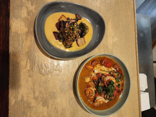 The shrimp and grits had great potential—plump shrimp, creamy grits, and a delightful mix of spinach, andouille sausage, cherry tomatoes, and onions, all of which created an exciting flavor profile in most bites. However, the grits were warm and the sauce lukewarm. The shrimp, though, were slightly overdone, but I doubt the average diner would notice.