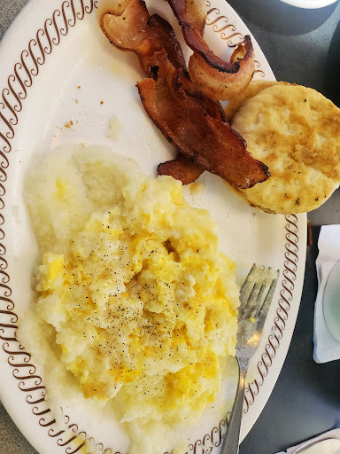 Read moreWent in after church on Sunday. Almost fell over a wet mop, sat at the low bar and notice how wet the floor was behind the bar and the trash on the floor. A very sweet Bethany got our drinks and silverware, said Mary would be right with us. Was interesting as I could not figure out who was managing this store. Mary said she’d be with us in a moment, while Bethany was trying to clear tables, check people out and wait on her own tables. Mary was making sure clean dishes got put away and the other two girls were not doing much. Finally gave our order and in the mean time had to ask Bethany for more coffee. Mary was on her watch talking to someone and took 10 minutes to get another table their drinks. Our meals came and I waited about 10 minutes longer for my waffle which I had to ask Bethany for, as Mary did everything but make herself available. We went to pay and Bethany was at the register, I asked her who the manger was on duty and she I thought she said Trae (but not sure of the name) she said he was the unit manager. He was cooking and not able to manage at all. I saw Bethany was the one with the hospitality apologizing for the wait, clearing tables, helping and taking care of her tables. The other three did more standing around than working. The mop was a huge trip hazard. Our meals was good, but the help needs some training. I have been in many Waffle Houses and this one...