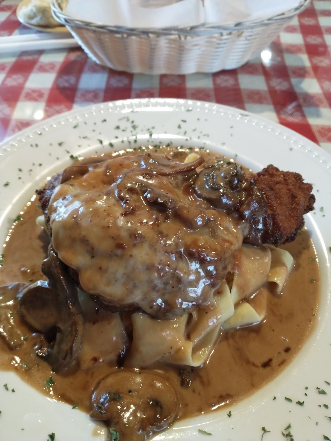 My son's chicken alfredo... bland. I thought long and hard to use that word, as it will almost certainly bring out the "you're used to Americanized Italian and not authentic Italian." No, I've been to Italy (don't think just tourist locations) and my brother married an Italian girl (previous sentence make sense now?). Bland. Penne were boxed, nothing fresh there, though, not surprising either. The Alfredo, was creamy, had a little too much butter, and not any indication of garlic, sea salt, nothing.. bland.