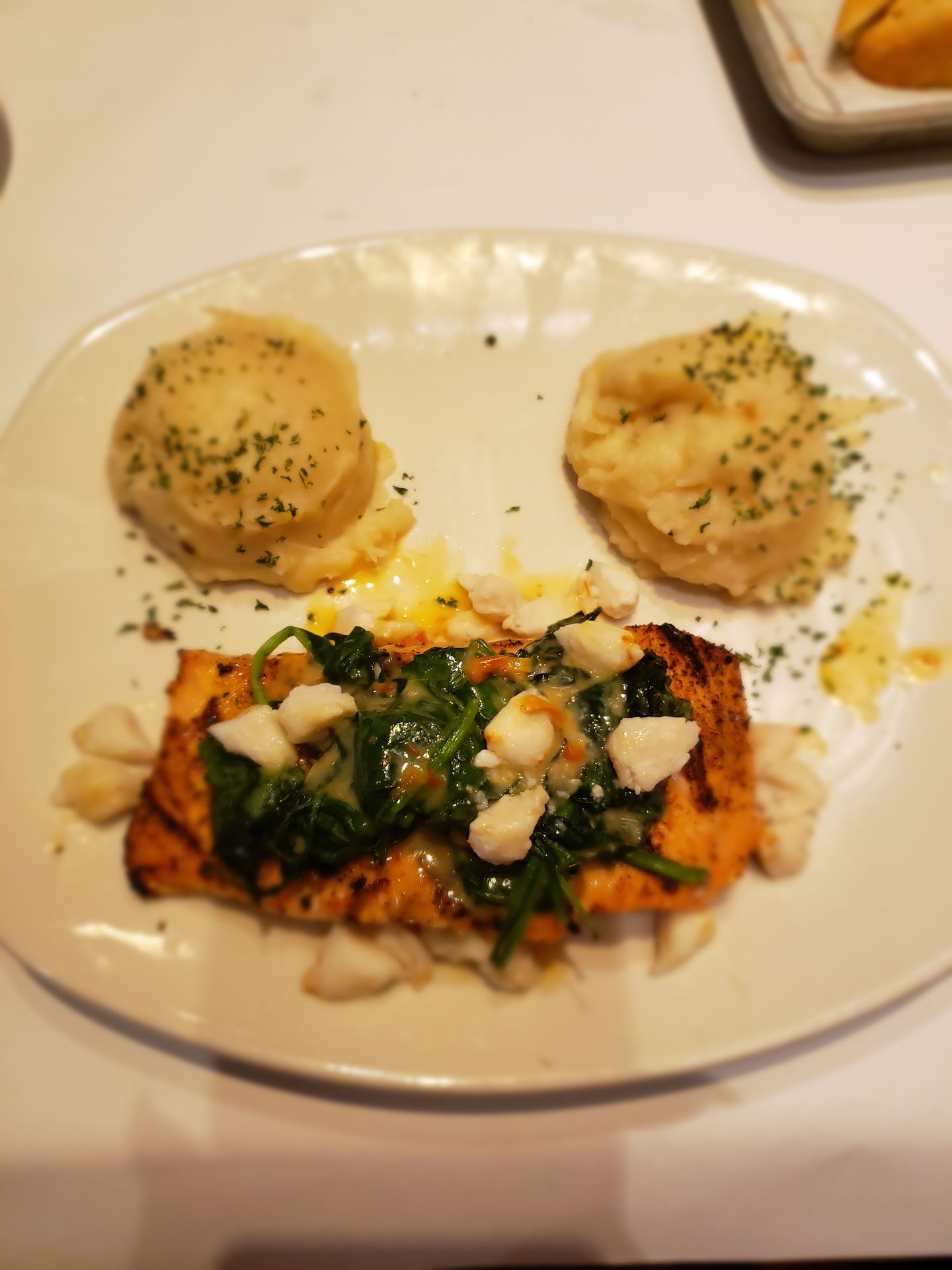 #FirstTimerAlert Beautiful restaurant. The ambiance was very nice. I loved the look of the staff. There was a nice selection of the menu, lots to choose from, so I went with the Rhea's Salmon. It was topped with a creamy spinach and lump crab meat. It came with two signature sides, so I doubled up on the garlic whipped potatoes. My mother had the scallop and shrimp scampi which she said, she enjoyed! š I had a little hiccup when it came to my Salmon, it was a little more undercooked in the middle. The outsides of it was fine. I let our waiter know, Jacob, who by the way was absolutely AMAZING! He was so apologetic and so sweet about the whole thing. š©š I let him know that my salmon was under done and he accommodated me by not only getting me a new cooked salmon to go, but he also removed my meal off the bill. 𤯠Just truly a blessing, so I made sure I was blessing to him with the tip. š¤ The garlic whipped potatoes were amazing and so was the salmon until the issue occurred. Also, the lump crab meat didn't really taste like crab meat but that's nor here or there. Anywho, I will be going back to this establishment because I want to try out other things that they have on their menu. It's just a peaceful place to be in and that type of peace I love. You can tell that all of the staff is very accommodating and anxious to be at your service. š I have pictures of both entrĆ©es but not a picture of the bread they served before the meal. That was good as well. They brought it out with some tasty olive oil, I'm assuming. Definitely stop by, ask for Jacob š although I'm pretty sure anyone you get will make you very pleased. And enjoy! š Thx for reading...
