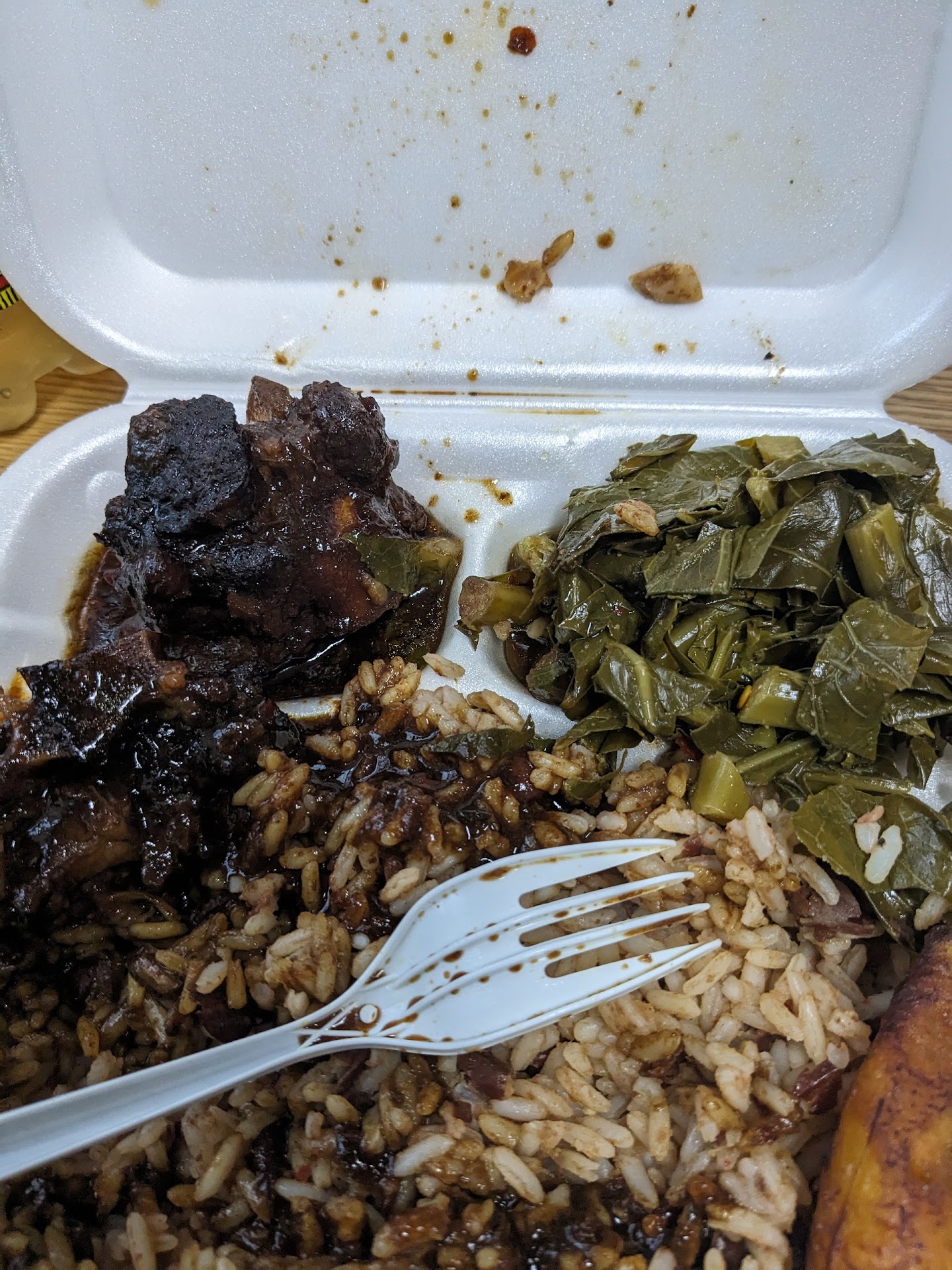 Read moreMy mom went here a few months ago and said it was soooo good but I was skeptical because I don’t eat spicy food so I just called her and asked her if the food was too hot or could I handle it she said it wasn’t overly spicy. I ordered on uber eats and this place is right around the corner from me and they are busy most times when I’m riding by so I said what the heck let me try it. Yallllll it wassss so good, I had the jerk chicken,oxtails,cabbage,peas and rice and plantains my favorite was the jerk chicken not too hot and some sauce they had that is so dang on tasty. The oxtails are good too I liked them not spicy at all the rice and peas are good and the cabbage I enjoyed my only con is it only came with two plantains but that’s not that serious the plate I got was $22.50 and it’s packed with mad food and flavor so thank yalllll because I loved this meal I was so tired of eating the same stuff so this for me was different and I will...