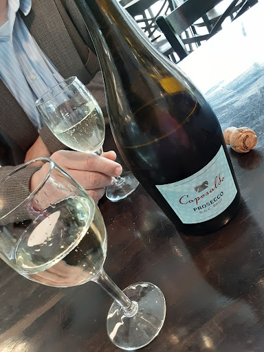 I had to try a dessert because it was my birthday and I struggled deciding between the Limoncello cake imported from Italy and the lemon-blueberry cake made fresh in-house, but eventually went with the local option. It was a winner! Moist, luxurious, not too sweet, and tangy with fresh blueberries, it paired amazingly well with the Prosecco. It was heavenly!