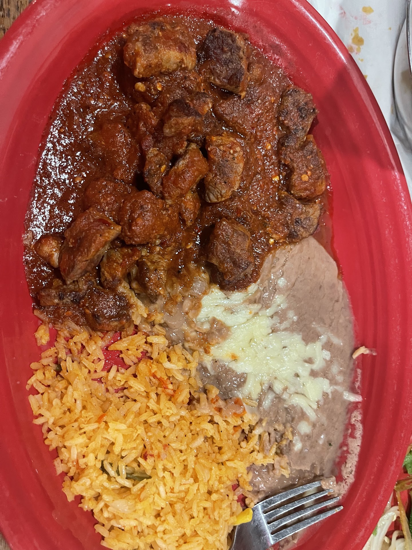 Honestly, I had gone to the other Los Reyes and had enjoyed it very much, especially the salsas, so I though highly of this food chain except that it was a bit expensive compared to other Mexican restaurants. This one was not as good, sad to say! But equally expensive. Their salsa they bring with chips tasted like canned tomato sauce with little spices and pepper. But I asked for a spicier one, and they brought two out. They were fantastic! I immediately judged a restaurant based on their salsa, so this was being set it up for a good visit. Their chips are also pretty good. I ordered the Colorado steak as you see in the pictures. I've had it at other restaurants, and it's amazing! This one was a zero. The steak had lots of hard fat pieces that could have easily been removed before cooking it, but they try to preserve, and this is why they get this low score now. It was not only full of hard fat but hard and not tender. This means it wasn't cooked long enough or just old meat and reheated too many times, and I believe the latter happened as it did not taste fresh. Also, I've had this dish in other places, and the red salsa is out of this world delicious and makes the steak taste amazing as it is cooked together. Their salsa at Los Reyes, for this dish, was mediocre. It was the same red canned tomato sauce that they have for the salsa and chips at entry that has little spices and not enough pepper, so it was equally atrocious. The beans and the rice were pretty good but doesn't make up for an 18.00 dollar plate if the main dish is disgusting as this was. My friend ordered the chimichanga. He added steak, chicken, and shrimp, and it was just very disgusting. He wouldn't eat it because he said the meats were not well seasoned. We just had an awful experience. They need to do better. I am going back again, but I will likely go to the other location or go here to this one and try another meal that is not these two. I don't like to break a company on two meals and believe different foods could taste different, so I may consider returning someday. I score them a 2 because our service was good, but it should be a zero based on the seasoning of their food and the quality of the food we have tried so far. I also forgot to say their corn tortillas are so disgusting! They taste horrific, bland and hard. They aren't the delicious hand made tortillas that you would expect. Both Los Reyes' in Charleston have horrible tortillas. I won't even eat them. It's a shame, really! When people know good Mexican food quality, the tortillas will...
