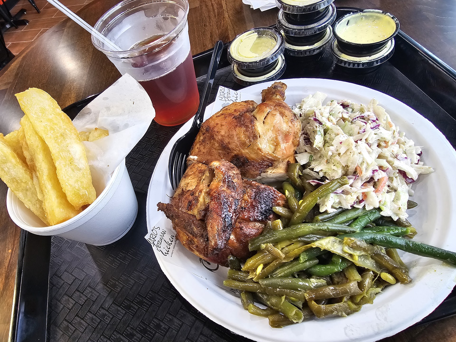 Read moreI have been a long-time fan of Mario's in MtP and am sooooo glad to finally have a location closer to my home in Summerville! I used to work in MtP, and this was my favorite lunch spot. I'm also excited that everything in the new location is EXACTLY the same as the original. Flavor, options, menu, friendliness....all the same!!! I ordered the half chicken with coleslaw, green beans, and a side of yuca (I'd already eaten 3 by the time I remembered to take the picture 🤦♀️ )....and lots of extra aji amarillo! This made a great lunch (and dinner!!) Yes, this was $30 with a drink. But I got 2 full meals from it, so truly, just $15 for the portion! Needless to say, Mario's location at Tanger is my new favorite...