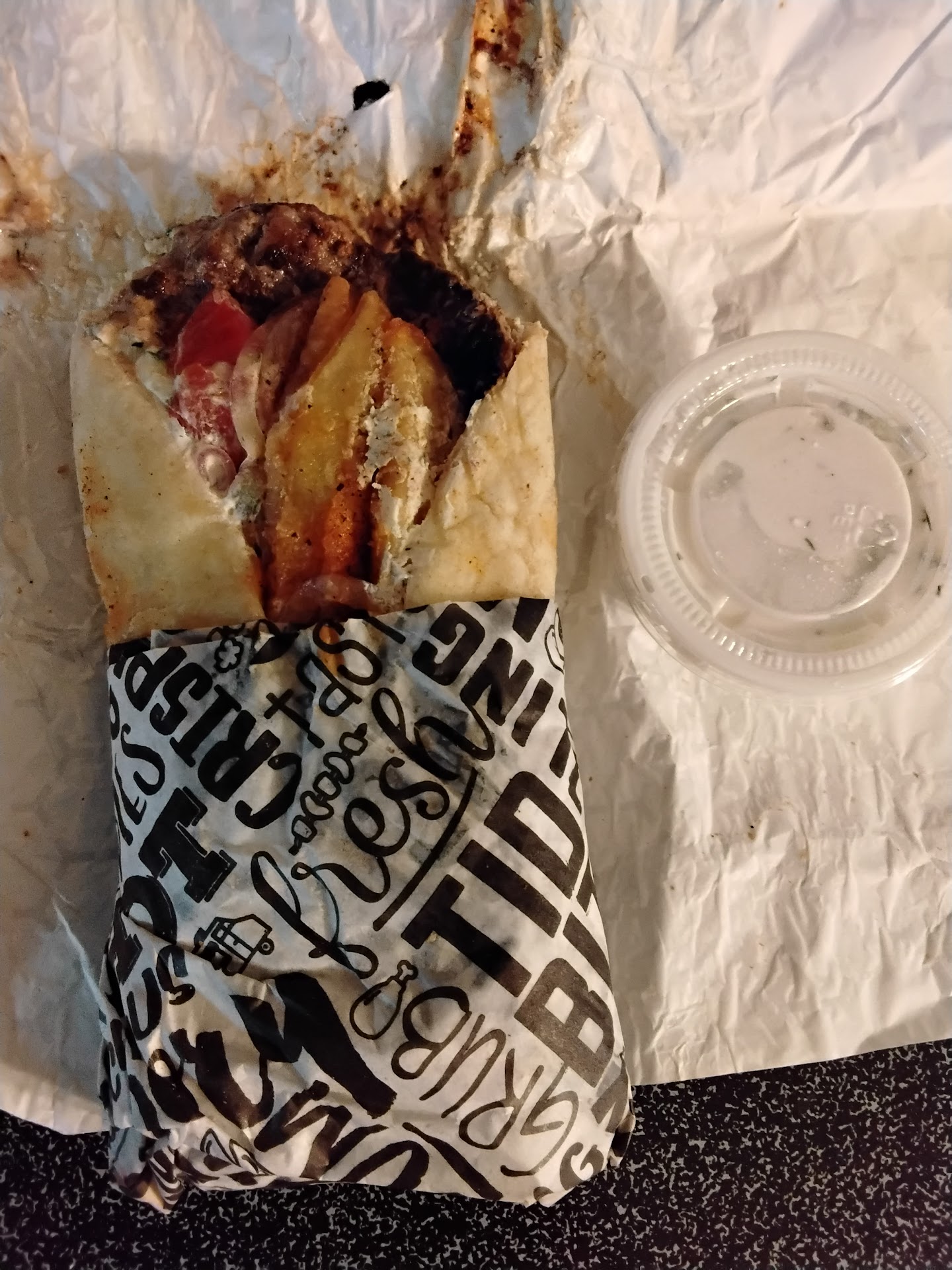 I went for a Gyro and I was just so disappointed. I took it to go and went back to work. Sat down opened up my food I told the lady I DONT WANT FRIES AT ALL I will take a salad over Fries. My gyro came with fries inside the wrap I have never seen this done before. OK let open this up because it had tomatoes on it when I said no tomatoes ( the wrapper said no tomatoes giving I ordered 2 one for me and one for my mom) then to open it up and it was lamb patties not sliced lamb as it should be. I'm a big foodie and I through the whole sandwich in the garbage because the extra tyzeki sauce i order i had to put on myself and when I tasted it, it was horrible I can make better. My mother was disappointed and we agreed to never come back. Now the said is good but not enough lettuce and I love feta but that was like a 1/2 container of feta. It was a feta salad non the less. I wish I could have been satisfied 😌 😕 😪. Non the less the ppl was friendly tho. The guy in front of me we had a nice conversation while waiting on the food. So good ppl all around just food was not to my liking. In the future if you go just know fries come INSIDE OF THE GYRO. SO...