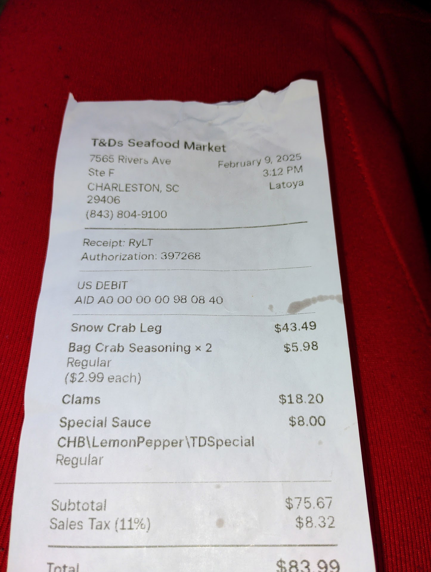 T&D Seafood was recommended to me by a friend for their fried crabs. I was so excited to support a black owned business that I purchased over $100 in cooked and raw seafood. The place was clean and nicely setup and everyone was so friendly. I ordered a whiting fish/shrimp basket with additional fried shrimp(10 shrimp) ($34), 4 fried crabs ($30), 2 medium crab legs and 1 lb large raw shrimp ($37). My complaint is the fish, french fries and fried crabs were extremely salty, coating burnt and greasy. It appears food was cooked in old burned oil. My partner threw the fish and fries in the trash. The shrimp was oily but eatable. I removed all the fried coating from the crabs in order to eat it.....I like to support black business but I expect...