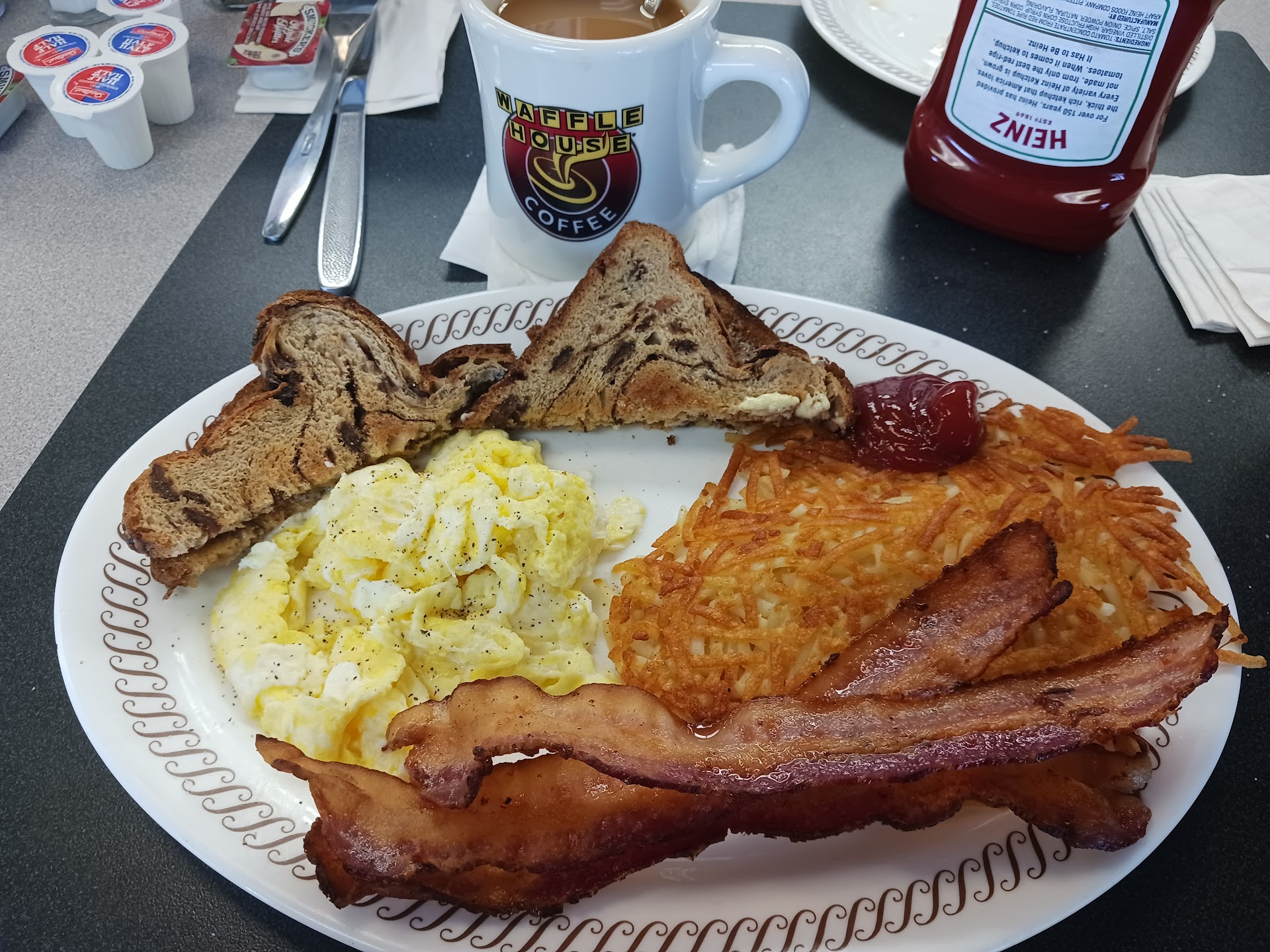 Read moreNobody thinks that waffle House is going to be an amazing experience, but If you are hungry at 12:30 am you can be quite limited on choices so here we were... At waffle House expecting the usually mediocre food, unfriendly servers and overall sense of sadness one finds at these locations in the middle of the night. This time was different though because I was told that we had to order at a window and stand outside. Is this supposed to be more efficient? They still had the usual 4 people working this night. All the while there were what I assumed were customers who seemed to be having a party inside. Loud music and laughing was easily heard and seen from outside, only to be interrupted by the occasional break they would take to go outside and smoke weed right beside the door. The girl who took our order was nice but the experience brought my already abysmal expectations to an even lower low. The plywood(hopefully temporary) order out window was especially classy. The 20 percent charge to the new carry out order added ample insult to injury. Do better awful house. We don't...