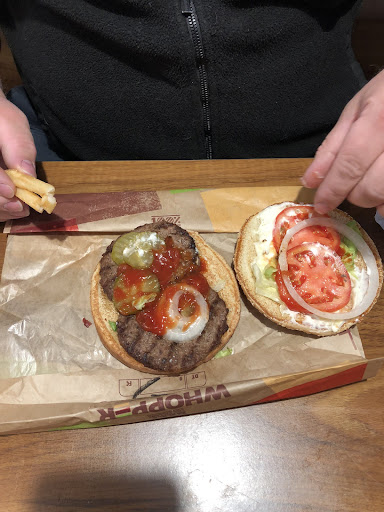 Read moreOn September 25, 2018, we stopped here for a quick bite to eat. We ordered the promotional “two meals for $10.00.” One of the meals was a whopper. Instead of receiving the whopper I ordered, I received a whopper bun and two hamburger patties. It was poorly assembled as well. I took the sandwich to the front counter, and I asked the female employee if they were out of whopper patties. She looked confused and then muttered, “Ummm, yeah.” The male employee making sandwiches said, “We temporarily ran out of whopper patties, so we had to improvise.” He then said, “We have some now, so I’ll make you a new sandwich.”