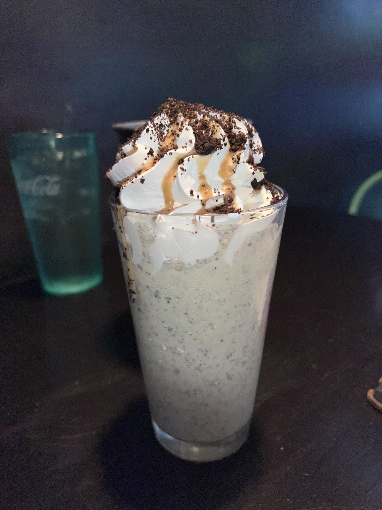 The food was fine too. Nothing great. My sister and I shared a Nutella Pretzel milkshake. We did not add liquor. The shake was thick, smooth and had a wonderful taste. It was big, plus we were given the metal blender cup with some extra in it, so there was more than enough for the two of us.