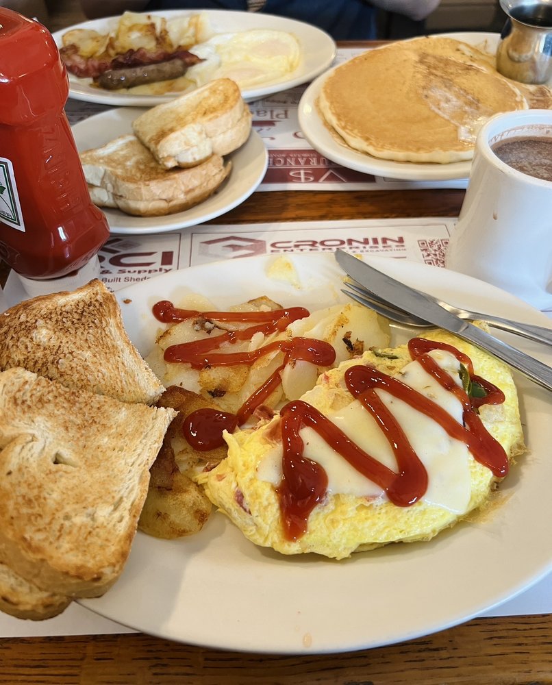 I was at the EVgo chargers in the Target parking lot while my car was charging for my next round of Uber trips, and I was looking around on Google Maps and saw this little restaurant. I'm glad I decided to stop! I walked in to a small, just above half-full restaurant and was greeted almost immediately. Wait staff was very kind and I was seated, given a drink and a menu, and was thinking about what to order, all within like 5 minutes or so. Ordering was fast and simple, as the menu is very well organized and easy to understand. I got a Western Omelette and a sweet tea, was served very quickly, and it all came to $11.21 with tax. This place really lifted my mood for the rest of the day! Just putting this here at the bottom before I start answering questions in all the little categories on Google Maps... This place is definitely vegetarian friendly, but I'm not so sure how the experience would go for those who prefer vegan options. Most of their dishes are based on eggs, so you'd probably be missing out on what's meant to be the star of the meal. I forgot to ask if they have vegan pancakes and whatnot, my b