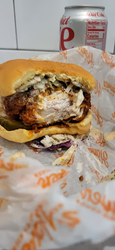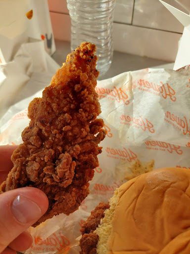 Terrific first experience. Really. Delish, high-quality fare that truly satisfies. Went with "THE" sandwich (figured I'd better start with the basics, but, let me say, in complimentary fashion: there was nothing basic about what they offer). For instance: The fry oil wasn't loaded with buildup, left long unchanged--as many other franchises tend to do. The "Rob" sauce (ingredients currently unknown) is clutch. Didn't get the fries, but will next visit. Right down to the premium bun, the order flow, the online presence...seemed each and every very element revealed care, attention, thought and great execution. Generous sandwich-size/portion. FRESH pickles--tangy & cooling..sliced thick-just the way that I like 'em on such a thing. The slaw addition works. Thick, substantial filet, nice crunchy coating. I went with medium spice level. Righteous. They've definitely got something, there. Employees were happy, genuine, smiling, friendly, & helpful. Environment was clean, bright, inviting and welcoming. The design language, signage and trade dress are, especially to me, very appealing, clean, & easy to understand. Distinctly different from Chik-fil-A (not to dis 'em). Miles better than Popeye's (again, not hatin'). I am definitely going back. Definitely worth it. [Update: I did, indeed--just five days later. Met one of the founders who went to college...