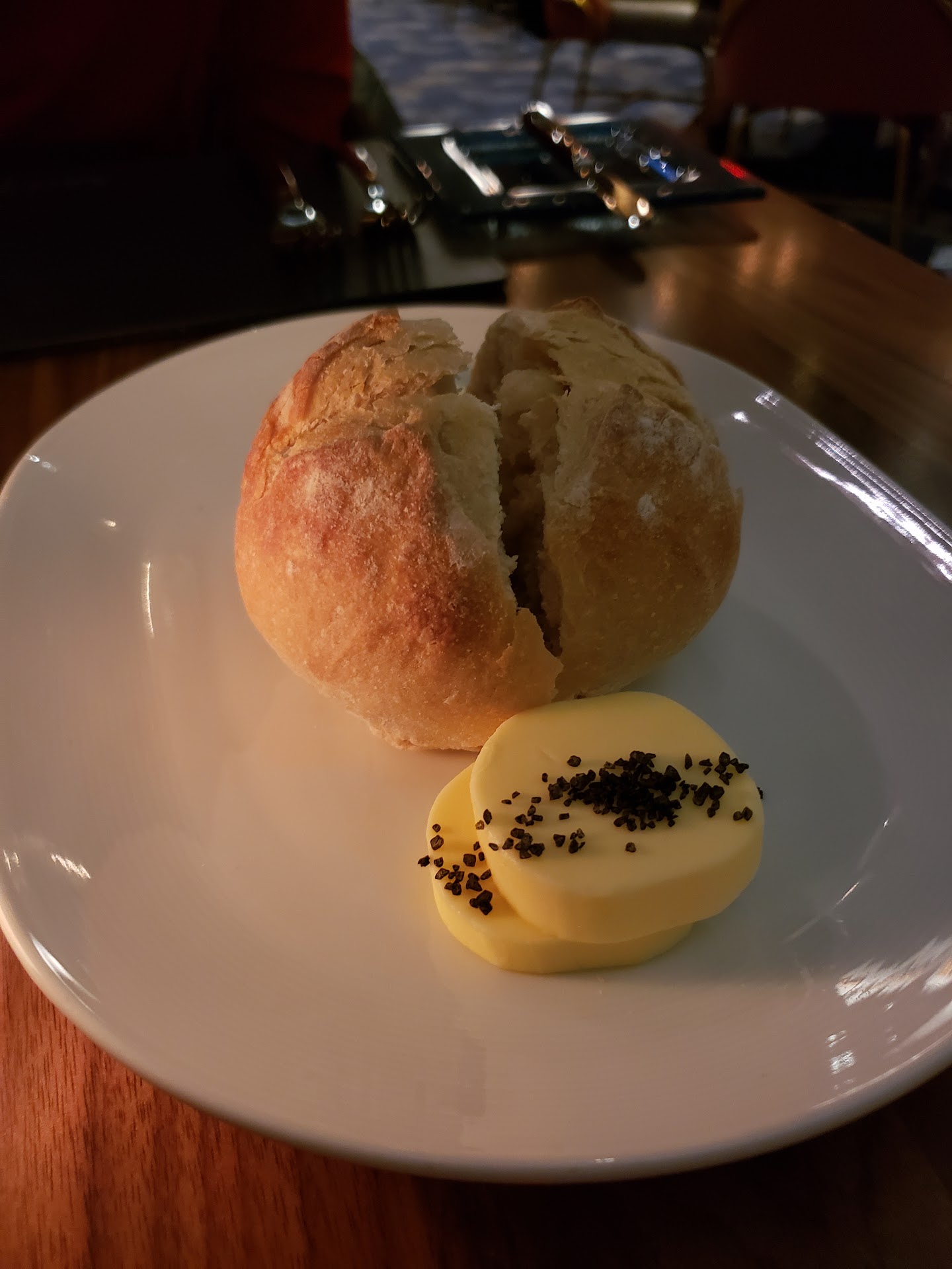Lynda got the 25oz bone in ribeye with spinach, while i had to try the Beef Wellington that Gordon Ramsay is so famous for. So here is the thing: the steak and beef quality is top notch. There isn't a bunch of gimmicks to enhance the beef, it's that carefully chosen and the flavor shines through perfectly. I've said this about a couple other places and Gordon Ramsay Steak is in that category. The beef is all aged, wonderfully tender and very robust flavor. The 25oz bone in ribeye is huge. Its actually a very reasonably priced steak for being Prime and such a delicious 25oz steak. Sauces are available, we tend to be purists and enjoyed the steak without any of the available sauces. Her ribeye was fork tender and flavor off the charts delicious. My Beef Wellington had imo the best tenderloin I've ever had in a Wellington. Add to that the puff pastry that was crunchy, flaky without a hint of soggy...this is a great Beef Wellington.