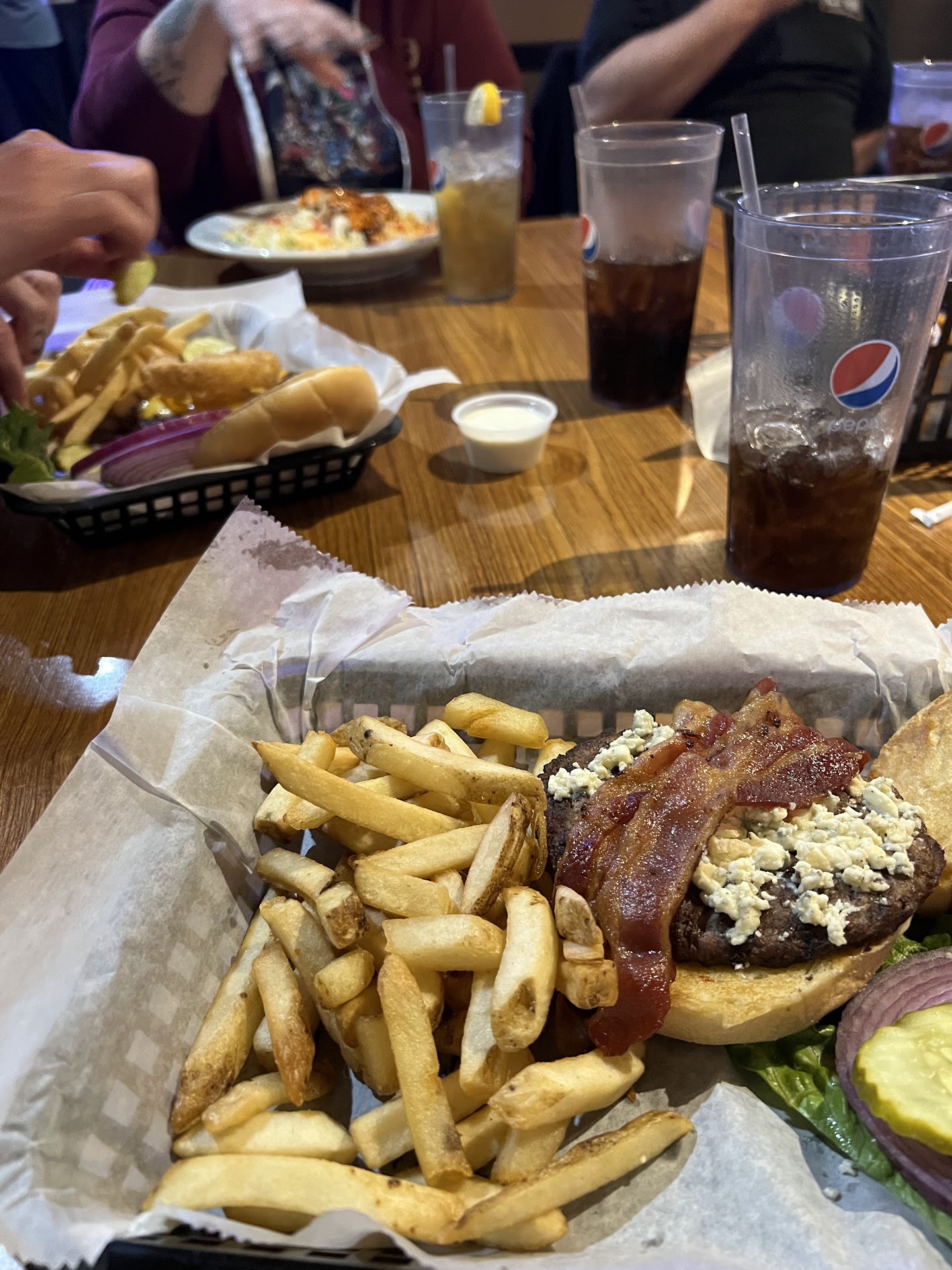Read moreThis place isn't fancy, it's a tavern with food that's slightly better than ordinary and friendly service. We rank the atmosphere high because they have options to choose from. When you walk in there is a relatively quiet area we call the family seats; the next area is the bar with surrounding tables; keep walking and you get to the game room that also has plenty of tables for eating; the final area is the large patio where they have live bands and lots of tables (but this does fill up when there is a band.) There are also 3 areas for groups, which can often be reserved without a fee. The first is off the family seating area, the second is off the bar area and the last is an elevated section of the patio. One caveat is that the patio does not have table service, we ordered food at the bar to eat outside, but it's not ideal. They have about a dozen beers on tap, and many more in cans and bottles. There are TVs, but the volume isn't blaring. The free parking can get crowded on weekend nights since there are 3 other restaurant/bars, one brewery and a dance club...
