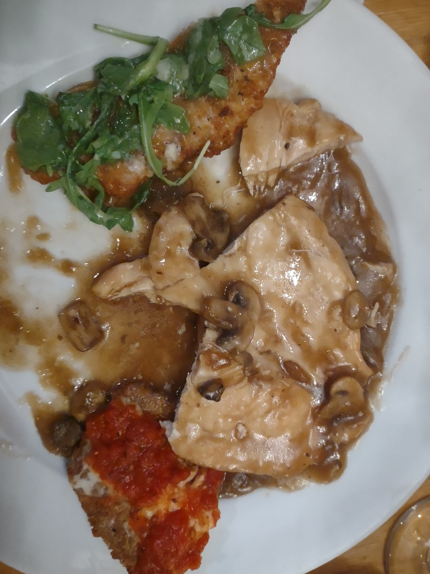 1st time here and maybe I will give it one more try, but I doubt it. Walked in waited close to 10 minutes to be acknowledged as there was no one at the desk, we were seated under a vent that alternately blew cold or hot air. Service was extremely slow. Asked for a cup of hot tea because I was cold from the vent blowing on me, was brought tea.... no sweetener, asked for sweetener and she forgot. Asked again 5 minutes later and she finally brought it but no spoon to stir it., and now i had piss warm tea!! All that before we even received our meal. Service was slow but I am pretty sure that was Brianna, our server and not he kitchen. She had a lackadaisical attitude. All in all, the Food was okay. I asked for chicken sciapella(spelling) and no where in the description did it say it would be extremely spicy. I honestly couldn’t eat it and I like heat!! My partner had the lasagna and he enjoyed it very much. I may try it again,still not sold...