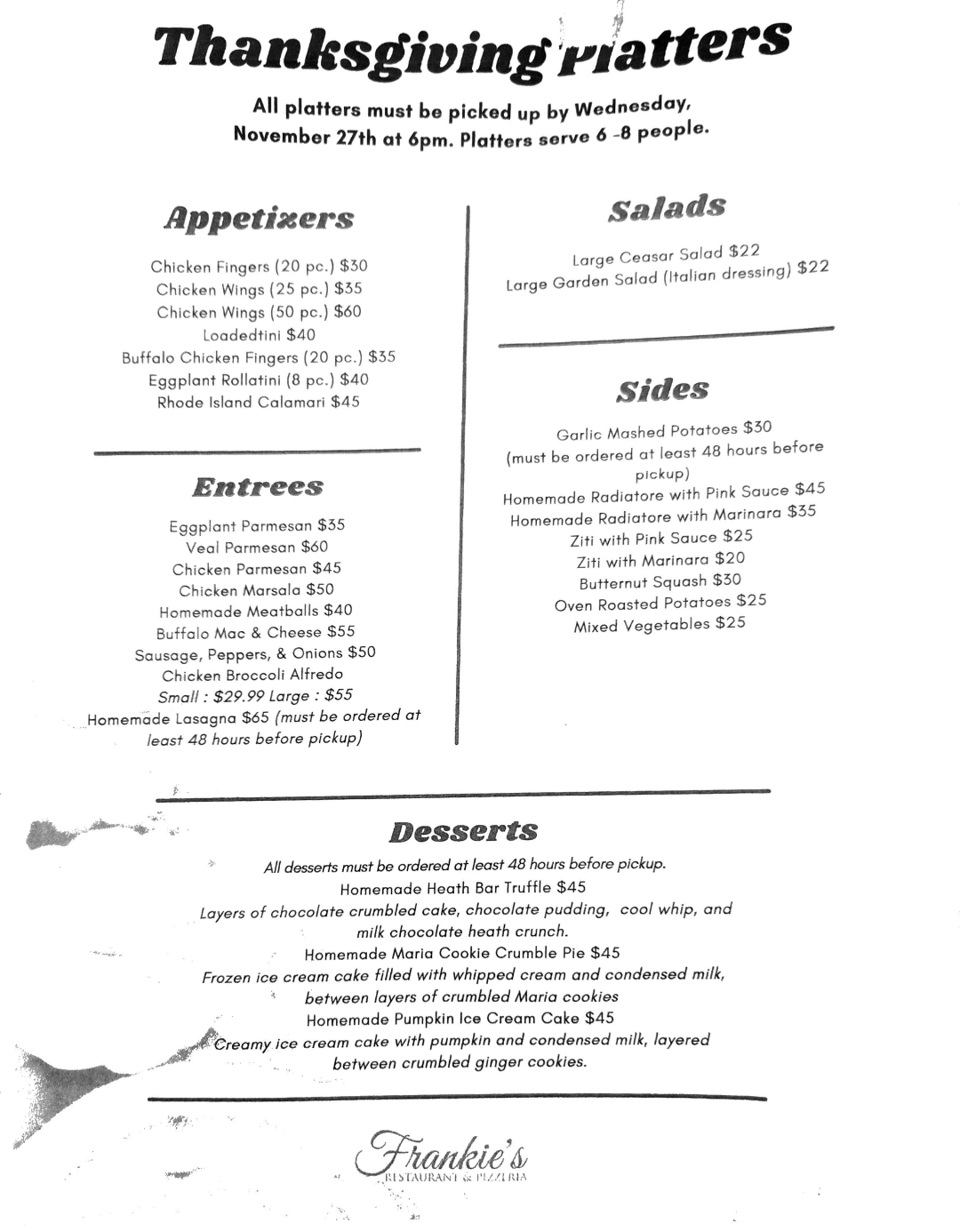 Read moreMy brother and I order out from this place just about every week, and we eat in about once a month. Take it from us gourmands: Frankie's has some of the BEST pizza in the state of Rhode Island. Even my picky relatives, who are very particular when it comes to pies, like this place and tend to request it when they visit. We've tried almost everything on the menu and the majority of it is quite good. My favorites are the Fenway, Nona's Pizza, the seasonal lobster mac and cheese and the Rhode Island Calamari. My brother likes pepperoni pizza with extra cheese and also the Sunday Special and the Arancini (both made with great bolognaise sauce). If there's anything to quibble about, their desserts are kind of ho-hum, but we usually get an appetizer instead of dessert. Frankie's does a lot of takeout, but they also have a nicely furnished dining room and bar, and the service is great no matter what...
