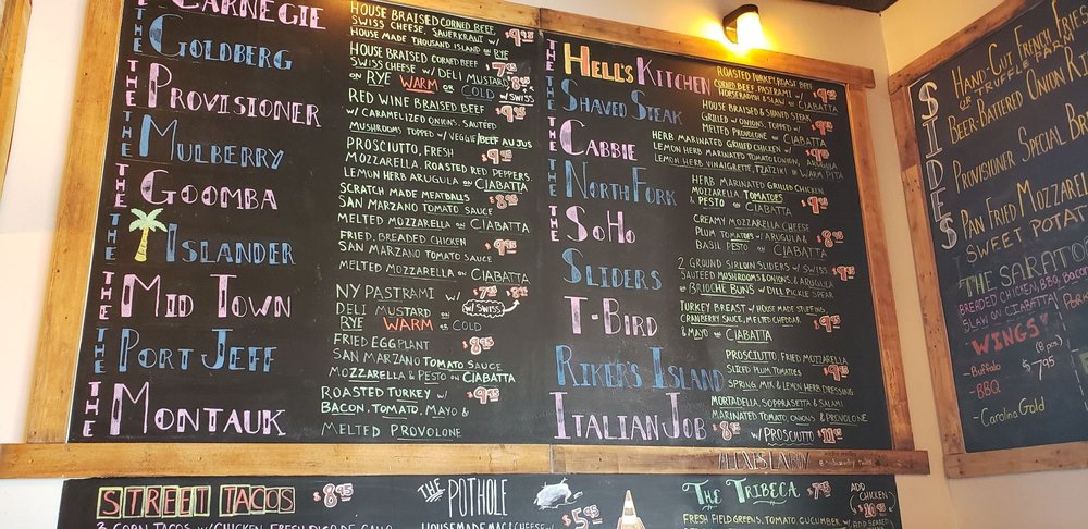 Read moreThe Provisioner is a destination to seak out enthusiastically, order a pickup for the team or stop in for a quick bite. We were greeted by a non-over whelming but super chipper staff that was excited to tell all about their top quality ingredients and even share their vendors. I had the special "italian" with motardella prosciutto and salami with provalone and my wife the Montauk, a turkey bacon tomato and melted provalone both stuffed into a chiabatta, accompanied by a half sour quarter pickle. The portions are plenty so prepare to share or have a ton left over. I will be returning to try the five hour red wine braised beef, can't get enough od this place. Not a ton of room to get cozy with three squeezed in to one...