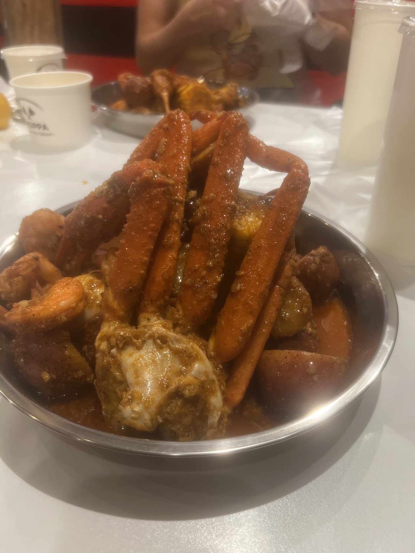 My friends and I all ordered Combo 1 and honestly it was very filling, we go out with full tummies. The one thing I did notice that caught my attention was the corn, their corn was so sweet and boiled to perfection. The shrimp was also so delicious, that was my favorite! My friends really loved the flavor of the food, itās nothing like we had. We got the āhouse specialā but I would recommend the ātongue on fireā because it had more flavor and the spice level was at 4/10.