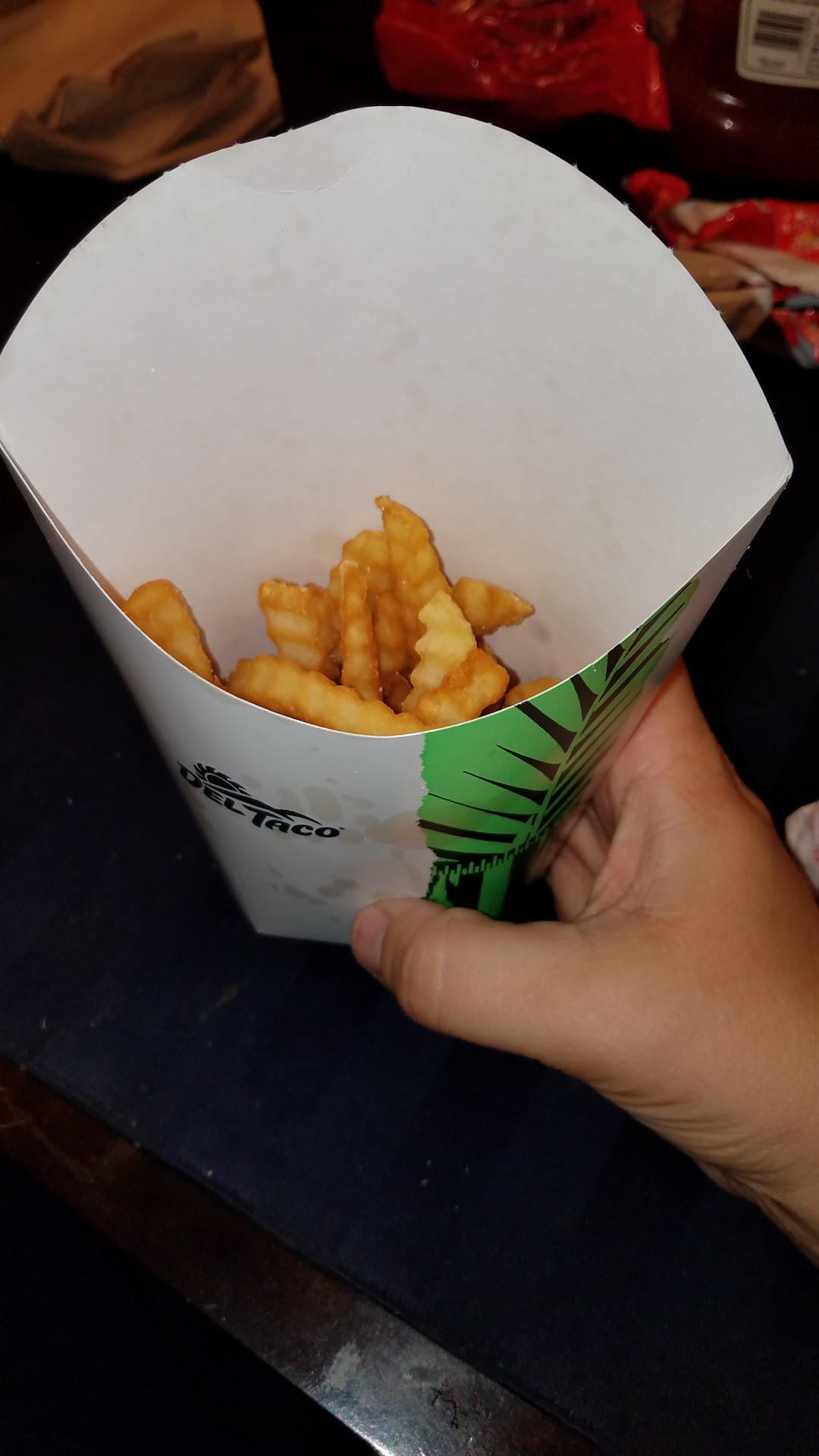 Read moreToday my sister and I visited Del taco to see if we can get a chili cheese fries accommodated to a vegan style plain fries and beans with tomatoes onions and jalapeños the total came out to be more than just a normal chili cheese fries. we simply ask is there a way to substitute the chili and the cheese for just beans and we were told no. my sister and I move forward in ordered a large fry and a bean burrito with no cheese. The young lady who took our order sounded like she had an attitude and in the middle of us placing a different order another young lady took over our order with an attitude, moving forward when we got home there was a piece a hair in my food I called to make a complaint to manager name Evea and she over talk to me so she didn’t even hear me say that there was hair in my food, she was so quick to just tell me that she can give me more food or my money back when that was beyond the case! You can’t mess with peoples food , I will be contacting corporate and when I told the manager this it was as if she was the one with an attitude because she was starting to plead with me as I told her I was going to call corporate. Worse customer service ever and horrible leadership she took no responsibility ! Only thing she said was she’ll talk...
