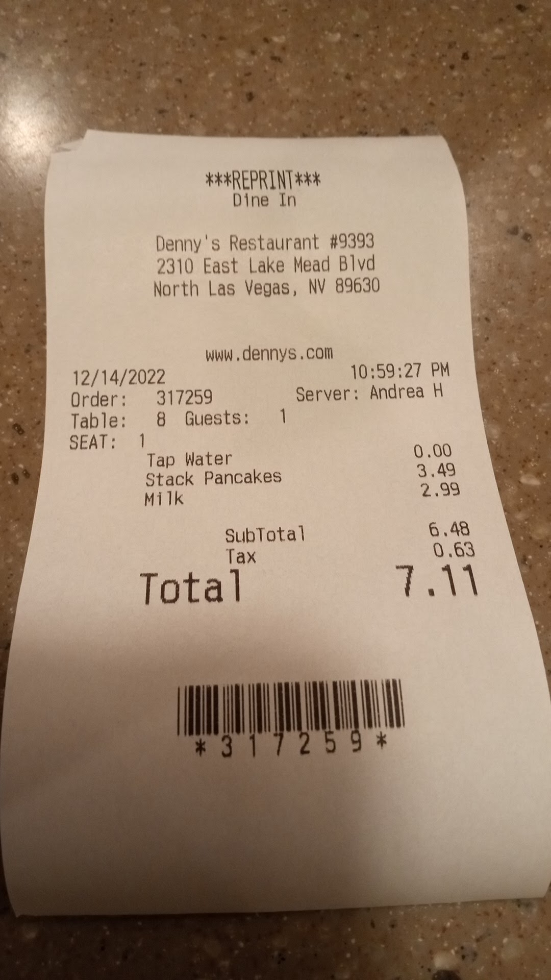 Read moreThis is one of Denny"s newest locations in Las Vegas and the best Denny's I have (not often) had the pleasure of eating. But because of all the updated features and architecture, I decided to try it during their grand opening at the beginning of 2022. I have been a patron of Denny's for (maybe) over 5 decades all across the South Western U.S. They've gone through a lot of changes over that period of time and some locations have gone pretty low. Even the Denny's in W. Sedona, open 24 hours, was forced to close after years of bad reviews. But getting back to N. Las Vegas, this Denny's, after a 1/2 dozen visits so far, provided the best service and food quality I never really expected going in. During a grand opening it is common that they would be over- staffed and very attentive to their new patrons. But the attention to service and quality of food have not waned since their opening. I spoke to the manager yesterday and I said the only criticism I have is the restaurant is not big enough. (It was packed & usually very busy). He said he couldn't agree more. He's been trying to convince the owner to expand a patio on the property. The same manager that opened the restaurant is still there. He must be doing something right. You won't be disappointed. But beware. The days of $1.99, $2.99 and $3.99 Grand Slam Breakfasts are long gone. Like everybody else, they have been subject to inflation and their prices (and operating costs) have increased 25 - 40%. But their portions are large, the quality is great, the service is great, their kitchen staff is well trained and gets the food out fast and their cleanliness is exemplary. Highly recommended. And they have an ample discounted Senior Citizen (55+) menu with great...