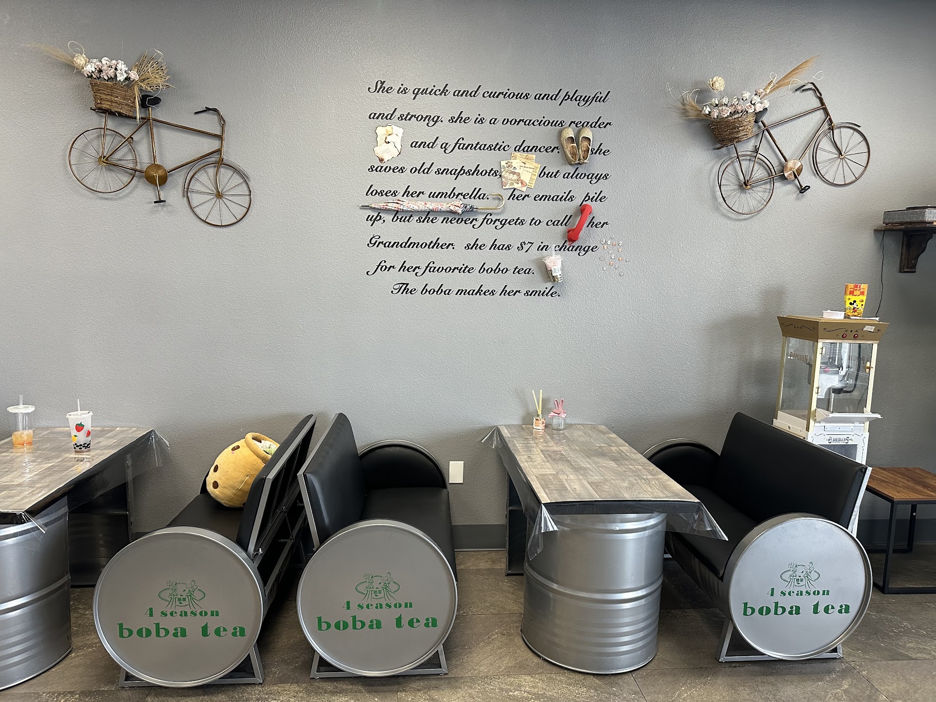 What a cute new little boba shop. The first thing I noticed when I walked in was the spacious industrial interior design and the wall art. The furniture looked brand new, and the seats had large cushions that were comfortable enough to sit in for hours (although I didn’t stay for quite that long). All surfaces looked like they could be sanitized easily and quickly. I also noticed they have free WiFi here. The cashier greeted us immediately and had a happy, energetic personality.