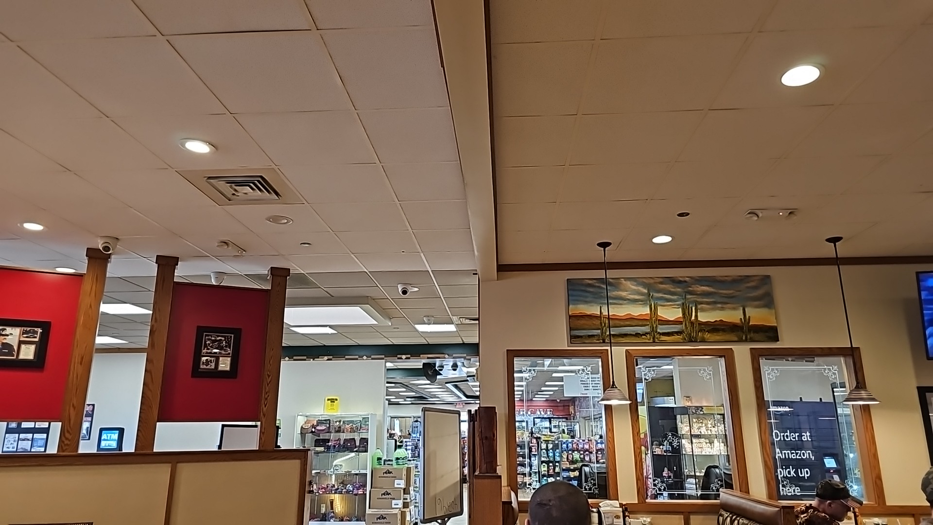 Read moreFood is ok. The salad you get has been sitting in the refrigerator on a plate under saran wrap all day so you can Imagine how that looks. Wilted lettuce, cucumber turned color, and rotten cherrie tomatoes. No croutons, 1/4 of a teaspoon of cheese. Lovely right? Total cost to restaurant = $ 0.14 cents. Fish was old. Been sitting in the refrigerator for about a week. Mashed potatoes tasted like chalk. The garlic toast that comes with every dinner has now been permanently discontinued per corporate as well as the soup and salad bar we used to get. Crazy thing is now that they have taken away all that from us the menu prices have actually gone up. Their motto is give the customer less but charge them more I guess. That's what their doing anyhow. There was only 2 waiters and 1 cook working at rush hour dinner time so it is what it is. No one wants to work anymore in the USA so everything is now subpar. There is no other food choice at this truck stop so your stuck with it. Dunkin Donuts is only open in the early morning and this restaurant closes at 8pm also. After 8pm I guess us truck drivers can just eat dirt and...
