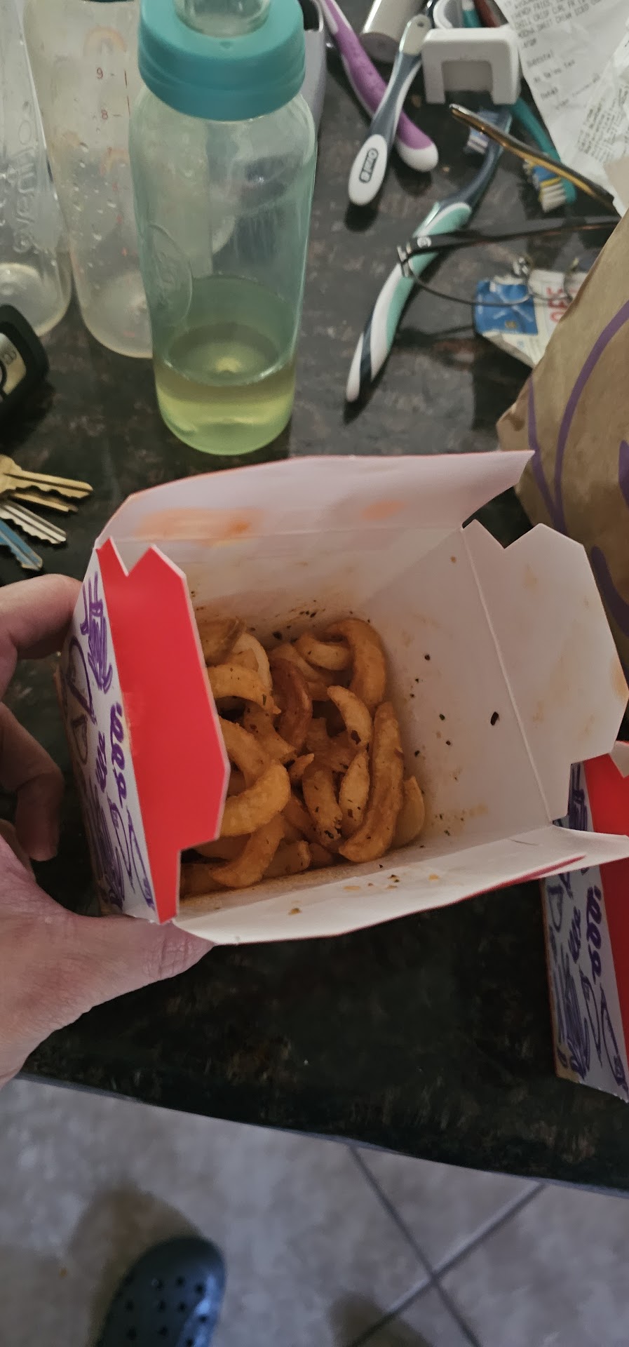 Lost in transition: a mobile order. Unfortunate as it is, I thought this was the good Jack in the Box, but boy was I wrong. Made a mobile order with my friend, we hit the button saying we arrived, walked inside, let the woman at the counter know we were here for my order.