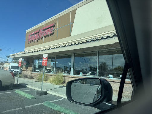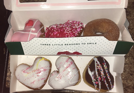 I came here during Valentine week, where they were selling the specialty heart donuts. They looked so cute and tasted great! The boxes they came in (packs of 3) was also sweet, with the quote “Three little reasons to smile”. Because of the event, the line ups were huge – both drive thru and indoors – so the wait times were long, but not considered for this review. The employees there were all quick and courteous to their customers, in doing what they can to complete orders. The area, despite being crowded, was still well kept and maintained, including the washrooms. The wait time was around 30 minutes until we finally received our order. They were all correct. I would advise ordering online for specialty donuts near events like Valentines Day, Christmas, etc. at Krispy Kreme so you can avoid the line up at the cashier. Krispy Kreme also tends to sell the pricier doughnuts, compared to other doughnuts joints at Las Vegas. Regardless, their treats are all well crafted, and tastes awesome. I will definitely be buying again from here, or any other branches when the holidays or other special occasions come around. Krispy Kreme sells great doughnuts for the...