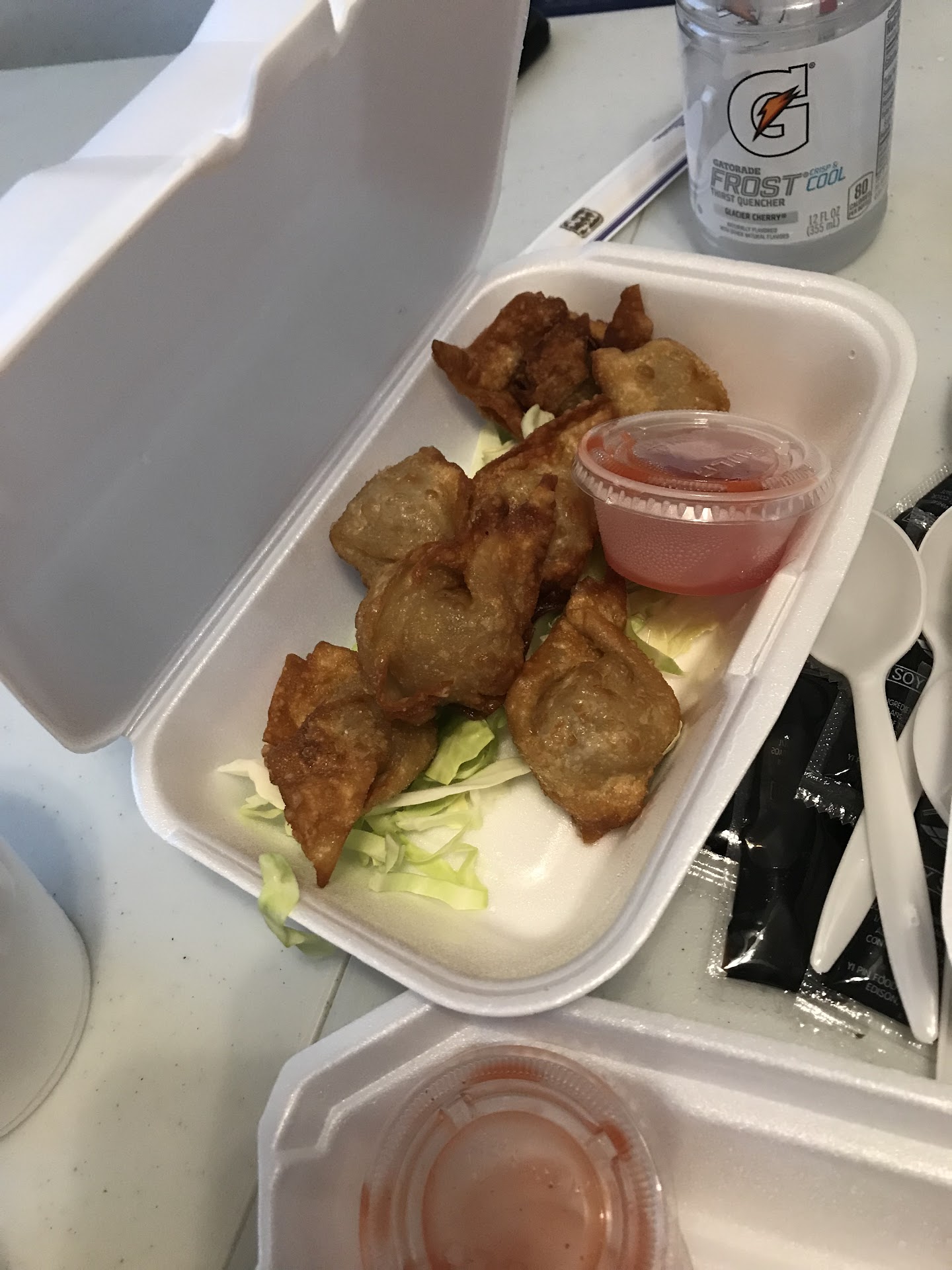 Opted for the Thai tea, Pork Adobo, Chicken Fried Rice, Chicken Chow Mein, and Won Ton Soup. Can I just speak about this Won Ton Soup. First it was pretty. the presentation caught my eye right off the bat. Second it tasted even better. I should have bought a large bowl to go as I was not expecting that. Won Ton Soup is one of my happiness comfort foods and I surely was in a happy place.