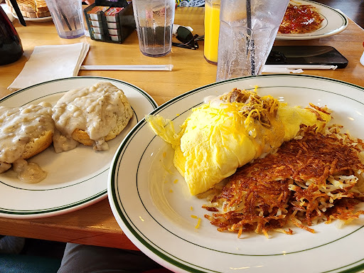 Getting to the food side of things, the two of us ordered almost identical breakfasts, with one of us adding a sausage patty to the breakfast. Both of us had ordered our eggs 'over easy'. When we got our food, we both discovered that our eggs had been cooked almost identically - one egg had the yolk cooked completely through, while the other egg had the yolk almost cooked all the way through. I don't even want to imagine what the eggs would have looked like had we ordered the eggs cooked 'over hard'. Thankfully, the biscuits were good, and the gravy was mostly good. However, the hashed browns were definitely undercooked.