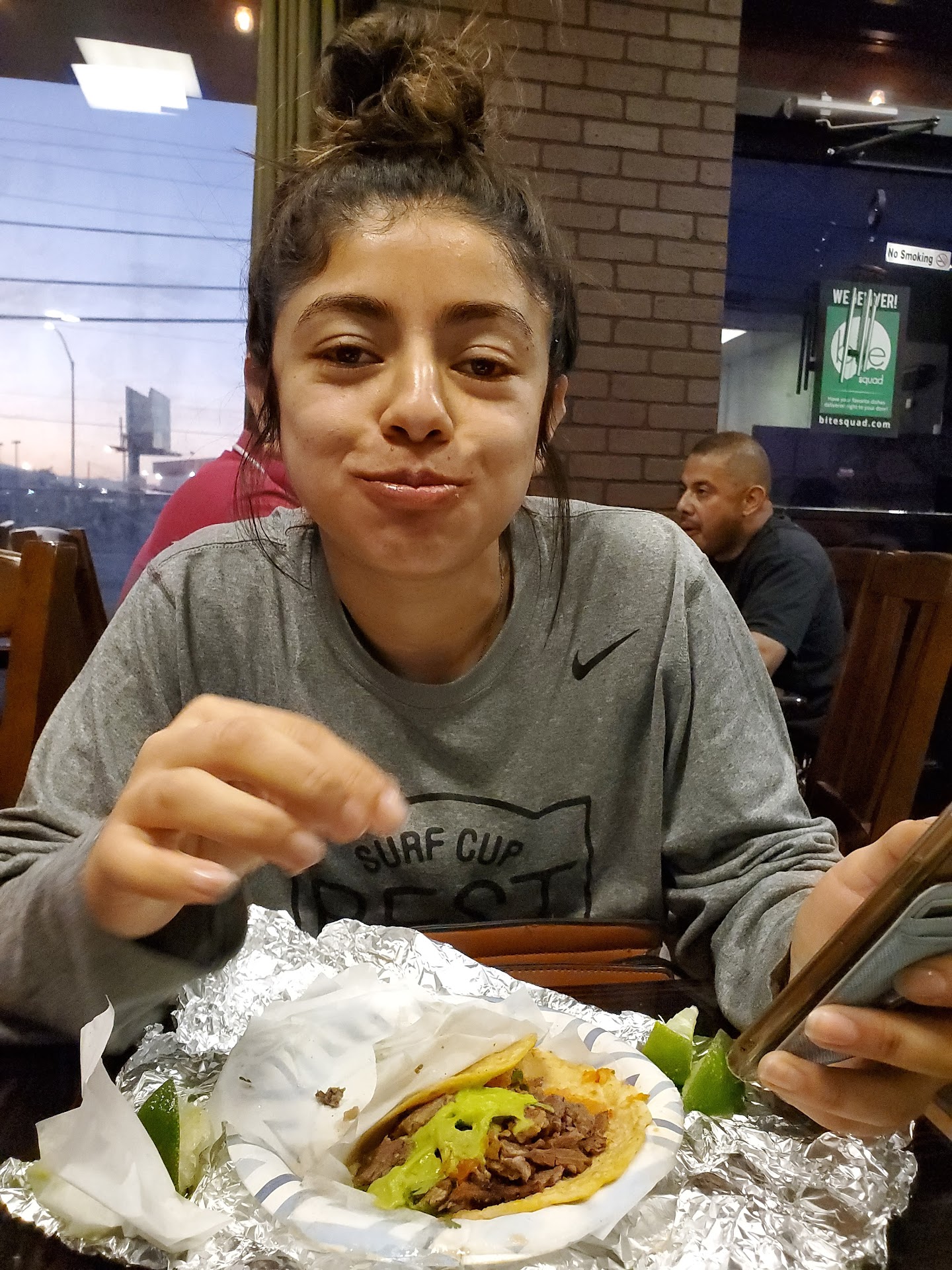 Read moreMy friend asked to go to "Tacos el Gordo" when driving through Vegas. I hesitated because I'm pescatarian (no meat) she then said that they had "cactus" tacos, and I decided to give them a chance. When looking at their menu I realized that it wasn't gonna work out. I then looked up a fish taco place near me and found this place (very convenient because it was right next door) . I don't regret coming here. Customer service was on point and the food was to die for. I had fish tacos, topped with pico de gallo and some tomato veggie salsa. Bomb! The only slight negative about "Mariscos la Lomita" is that their inside space is very little. My friend in the picture, eating her tacos(2nd pic) and fish tacos on...