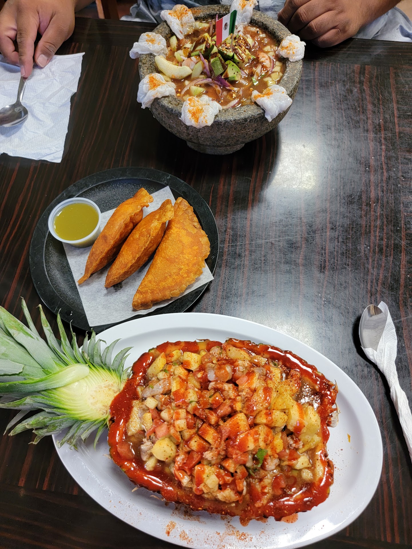 Read moreThis was my first visit here and it was a good experience. It wasn't busy at all when my husband and I came in. We were able to sit where we wanted and the hostess/waitress was very polite. I don't speak much Spanish, but my husband does so he did most of the ordering for us Food came out quickly once we ordered. The shrimp empanadas were fantastic. They were hot out of the fryer when they came to the table. I can't even remember the names of the other dishes we ordered but they were fantastic as well. One was a molcajete with shrimp and avocado. The other was like ceviche in a pineapple. A little on the spicy side for me but everything was fresh and tasted fantastic. It isn't a kid friendly place however, and pretty small with only 34 seats. So not a good place for a group unless you come at a later time on...