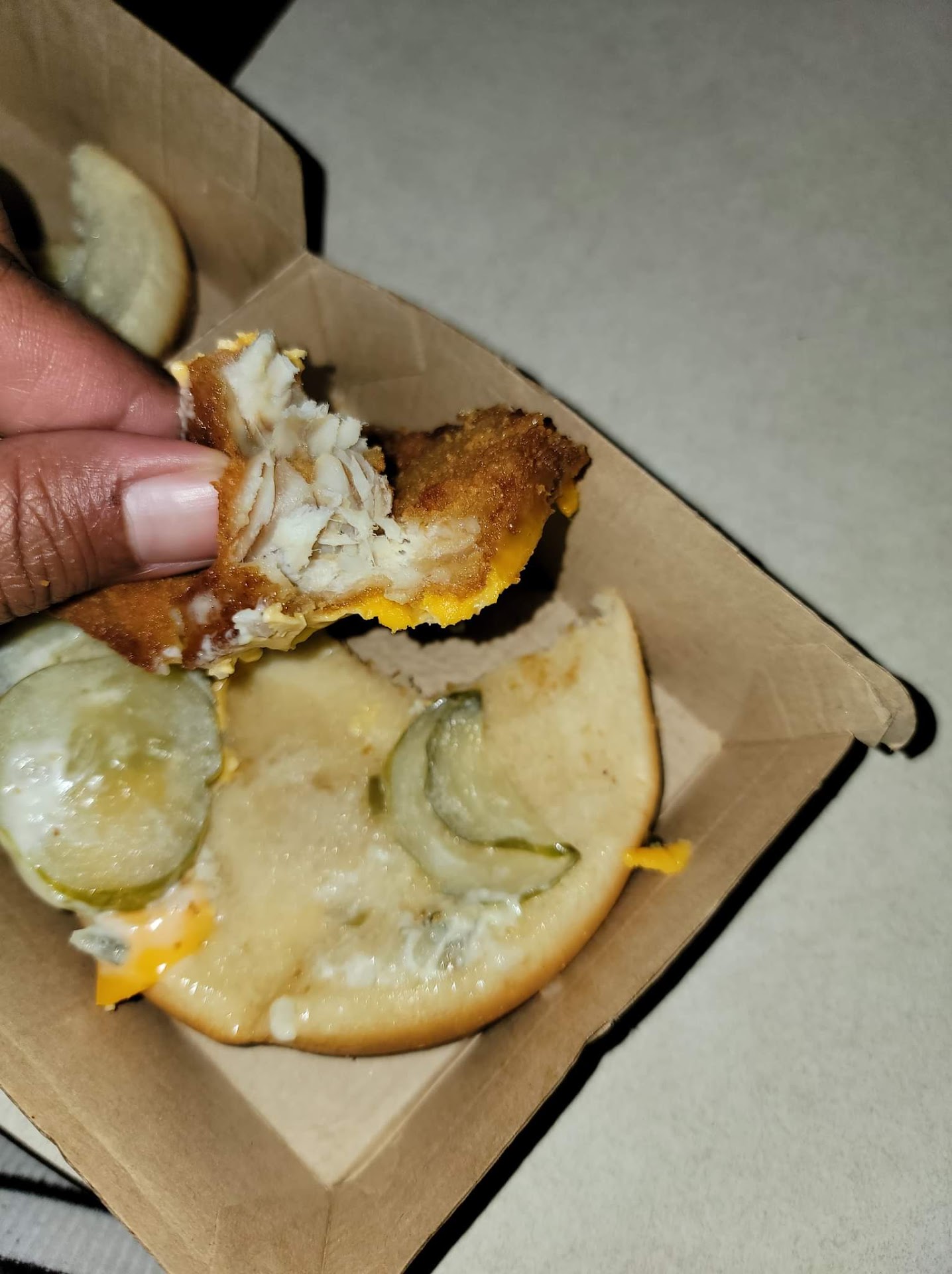 Read moreIt seemed the line was very long. It took 13 minutes to get to the speaker, then when we got to the window waited there 2 minutes. The personel working the window was pleasant but it seemed as though everyone one was confused or in chaos. Looking inside everyone was running in all directions 2 people actually ran into each other. I had 2 orders one with nuggets, one with a fillet o fish. The nuggets were fine, but the fillet was made special (adding pickles). When the fillet order was delivered it didn't have tartar sauce, so I had to go to the door, to which an employee just looked at me because the doors were locked. She finally opened the door and got a manager, told her and it was supposedly replaced. My wife bit into the new sandwich and said it was stale and old. (like it had been under the heater for a long time). They didn't open the door this time so I called, they said they could no longer open the door, and that we had to go through the drive thru. Funny enough there was another line but this one went through very fast (within 2 minutes). Told them what was said on the phone, the same individual from the window understood and took the bag to remake the order. The order came hot and fresh and it had fries (yay), problem was the fillet was overcooked, hard and crispy like popeyes chicken all of the way through the fish. She pulled it apart like a cracker. The pickles both times were dry like they had been sitting out. By that point the wife was upset and didnt care...