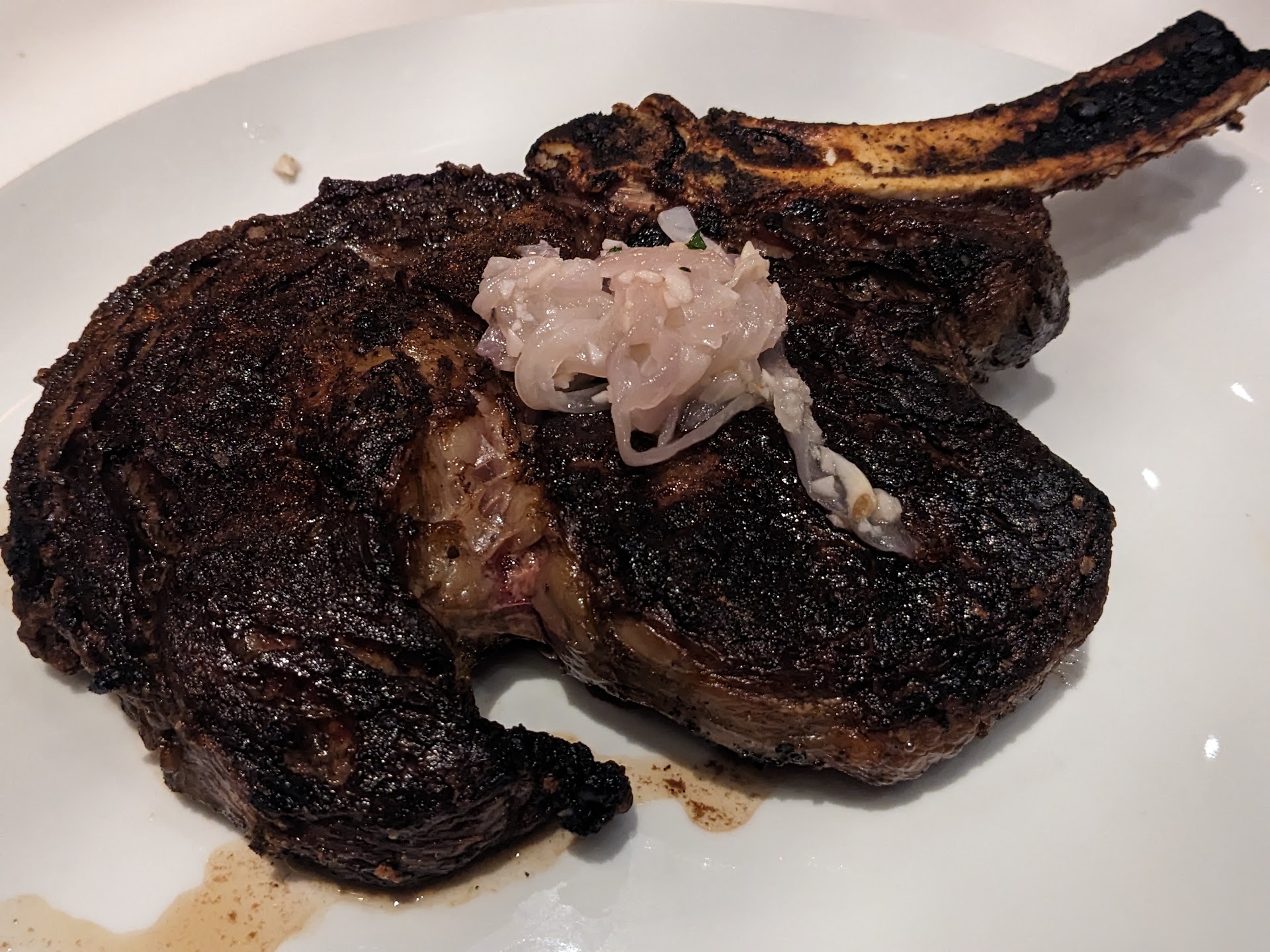 For our appetizers, main entrées/sides, and dessert, we ordered Crab Cakes and a bowl of Crab Chowder; Bone-In Ribeye, 10 oz Filet Mignon, Salmon, Sautéed Spinach, Grilled Asparagus, Mashed Potatoes, and a Chocolate Cake with an Espresso Martini, respectively. The Crab Cakes were good but it wasn't the same as the previous times we ordered it. The Crab Chowder was good as well but doesn't take the crown over a traditional bowl of Clam Chowder. The Bone-In Ribeye was phenomenal; in fact, I feel it's a better value than the USDA Prime Ribeye with respect to similar qualities. The Filet was just ok in my opinion (lacked a healthy char and seasoning). The Salmon was outstanding (according to my daughter). The sides were extraordinary and my family really enjoyed the dessert.