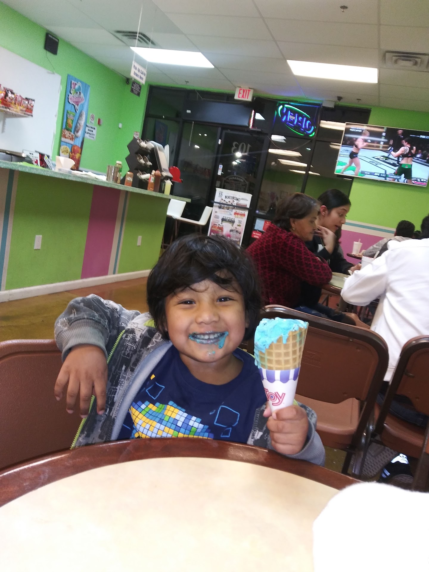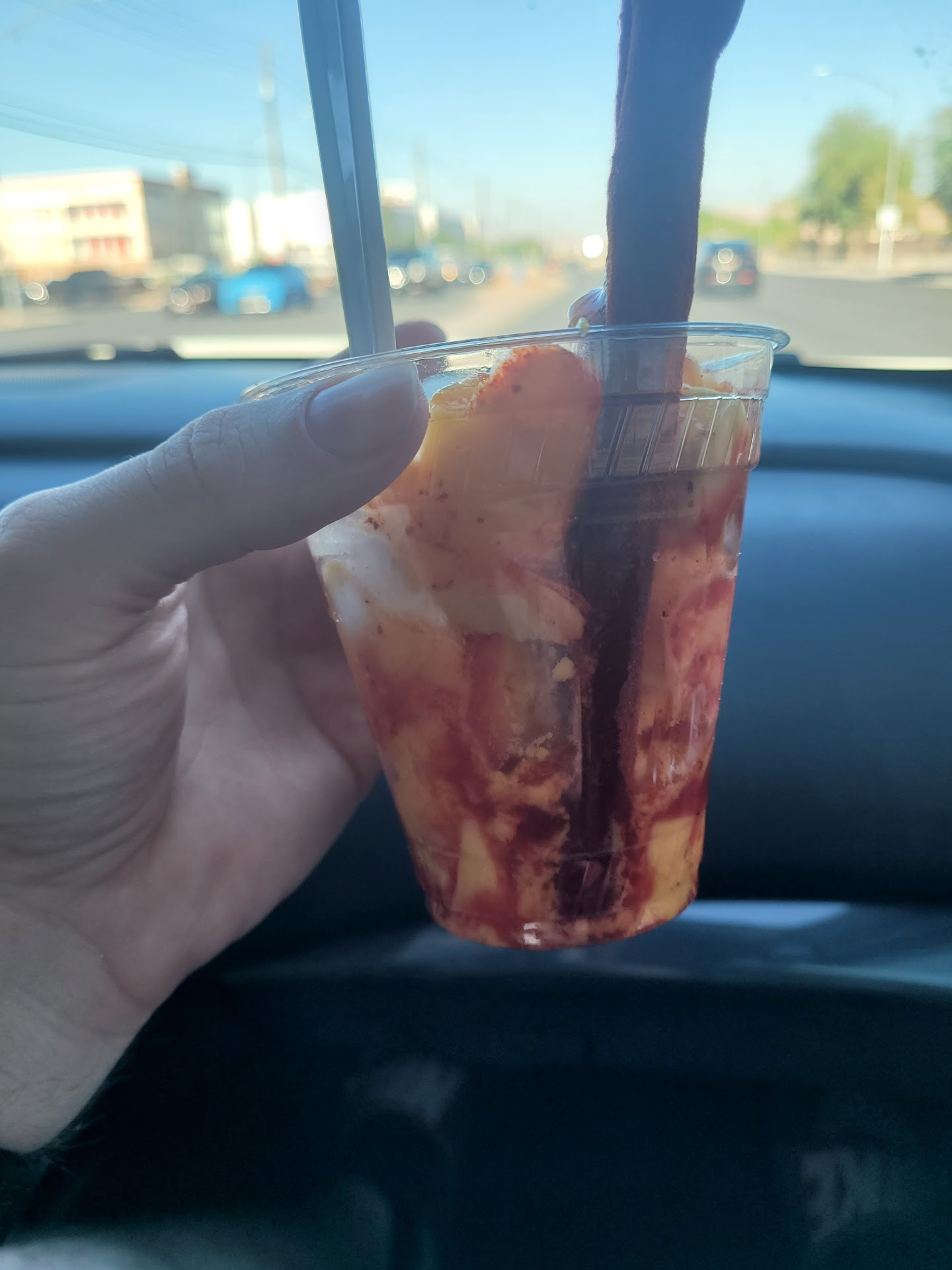 Docked a star because their menu is pathetic. No prices and no detail considering the vast variety they actually have.. like theres a picture boasting mangolada, but you can get it with other fruits not just mango, so for non Spanish speaking folks who have never been to a heladoshop before, it's confusing. Luckily I've caught on to a few things and was able to describe what I wanted. By these tiny blurry pictures alone, someone could order the esquite thinking that it's ice cream, not corn and mayo. Is that strawberry sauce or is that chamoy? If you're adventurous like me, not that much of an issue but if you're not or have certain allergies or dietary restrictions, might want to verify the ingredients or do what I do when I'm ordering something I have no idea what it's called, that pineapple thingy or that chocolate strawberry thingy and let them fill in the blanks....