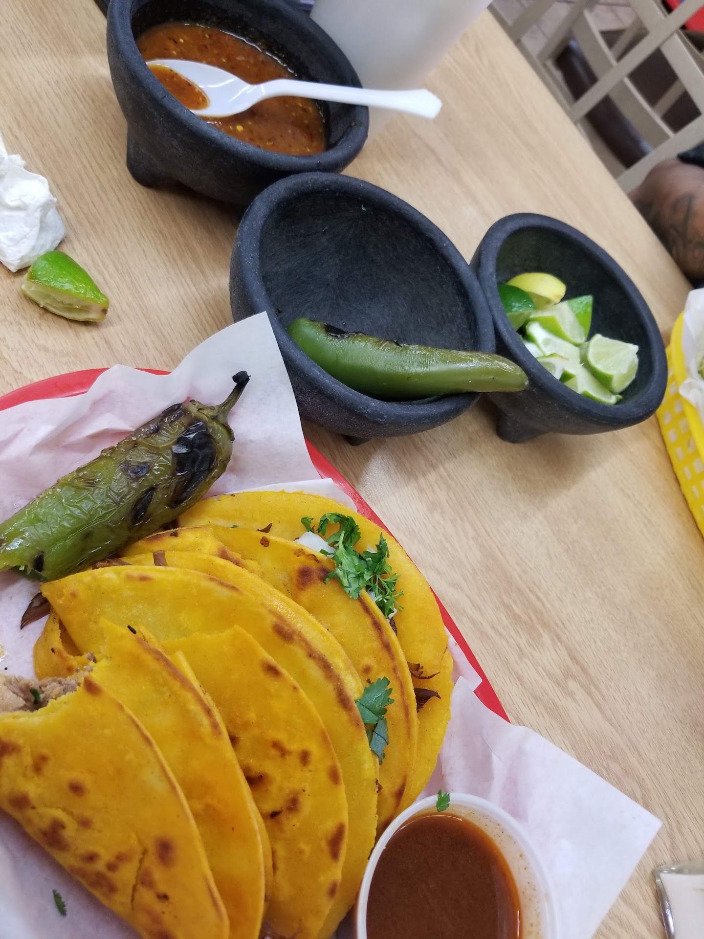 Read moreIt's a good place to get ur antojitos mexicanos, the only problem is the owner he's really rude,I HAD TO TELL THE LADY THAT HELPED ME TO WASH HER HANDS AFTER ME PAYING BECAUSE SHE WENT STRAIGHT TO DO MY ORDER,,THE OLDER LADY WHO WAS THERE LEAVING WHO I BELIEVE IS THE OWNERS WIFE TOLD ME THAT THEY USE HAND SANITIZER INSTEAD OF WASHING THEIR HANDS, THAT IS JUST NOT RIGHT. THEY THOUGHT I WAS NOT GOING TO...