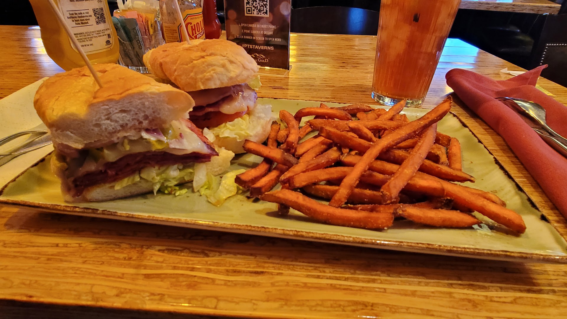 There was a QR code on a coaster in the middle of the table indicating the menu would be found there but it wouldn't download for me. The waitress brought a paper menu when she noticed us having issues. By the way, paper menu aren't reused here, they're tossed out. Drinks are presented in plastic cups and are not refilled. A new drink is brought out if you want more. Again, good practice in this day and age. The menu was limited which is so often the case due to the pandemic and the closures that have accompanied it.