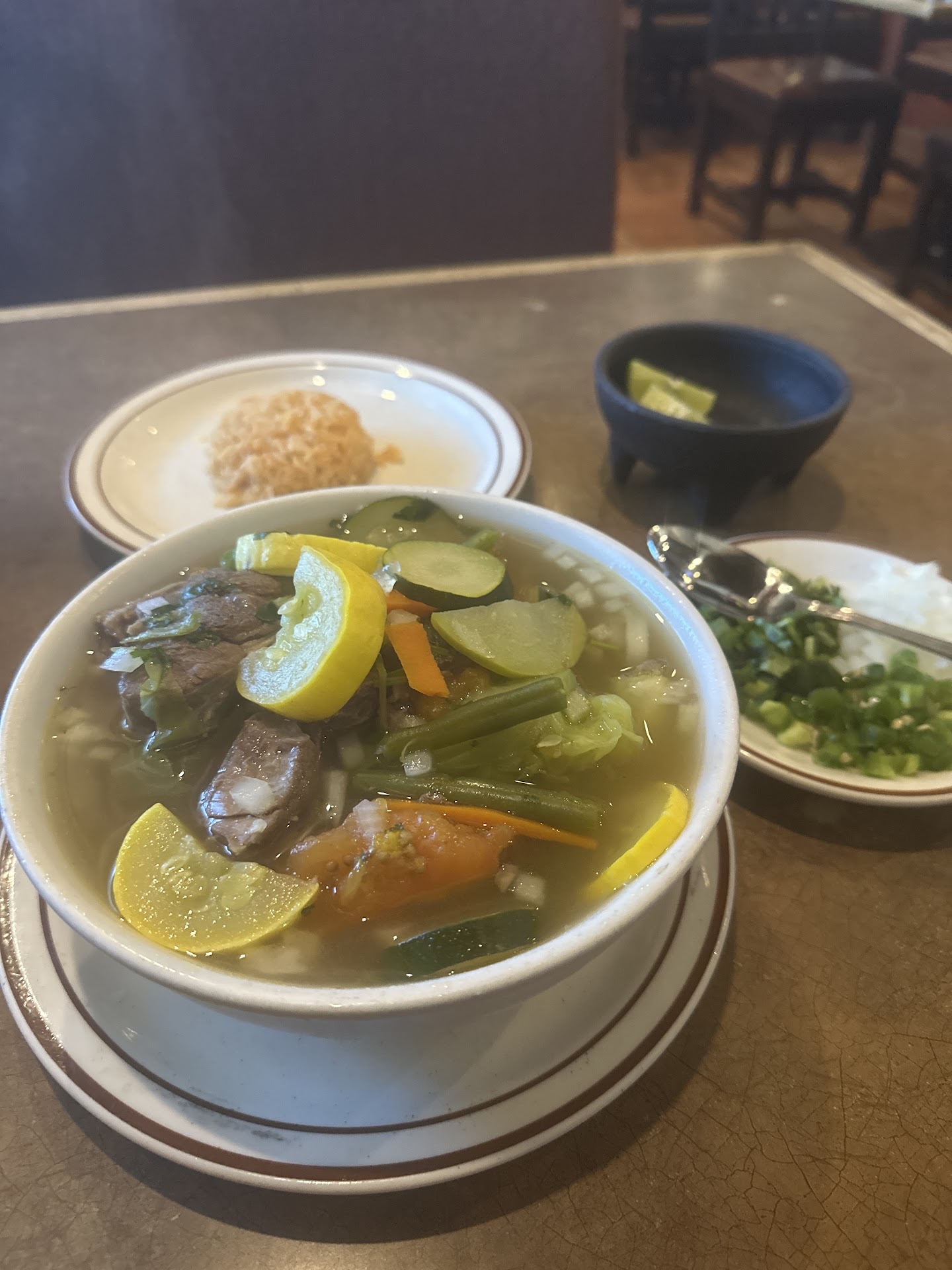 ย ย ย Read moreThis place is ok for lunch specials with the standard items like tacos, burrito, or enchiladas. This time I came for dinner and wish I hadn't. We walked in around 6:30 pm and we're told a 45 minute wait. As we started walking away we were offered high chairs, thinking it was on the bar. They took us to a tall really small flimsy table with high chairs barely room for our chips salsa and drinks. I asked a server if a table opens to let us know. About 10 minutes later he offered us a table saying he wasn't supposed to but sat us there anyway. I tried to order drinks and apps and he told us in an irritated manner he'll come back when we're ready to order because now we've put him behind. He made sure to make that comment each trip past our table. I decided to treat myself to the Mar y Tierra rib eye version listed at $35 comes with gulf shrimp. A little pricey I thought but should be excellent. Me and a friend both asked for medium. Food arrived and meat was well done smothered in a sour cream base sauce. Shrimp was dry and the cognac sauce it was in was burned. Reminded me of a dish I tried making when I was 10 years old. Got the bill and saw I was charged $48 bucks for this less than mediocre meal. I decided to speak up to the server about the mistake. He said new steak prices were on the 1 sheet page given with the main menu. The sheet shows my steak at $25. Now I'm really confused, and no one mentioned this to us. They literally just plopped them menus down and walk away. I decided to call the next morning to ask about this price difference and the girl on the phone said it was $45 bucks. I used to think this place was decent but I'm not so sure I can...