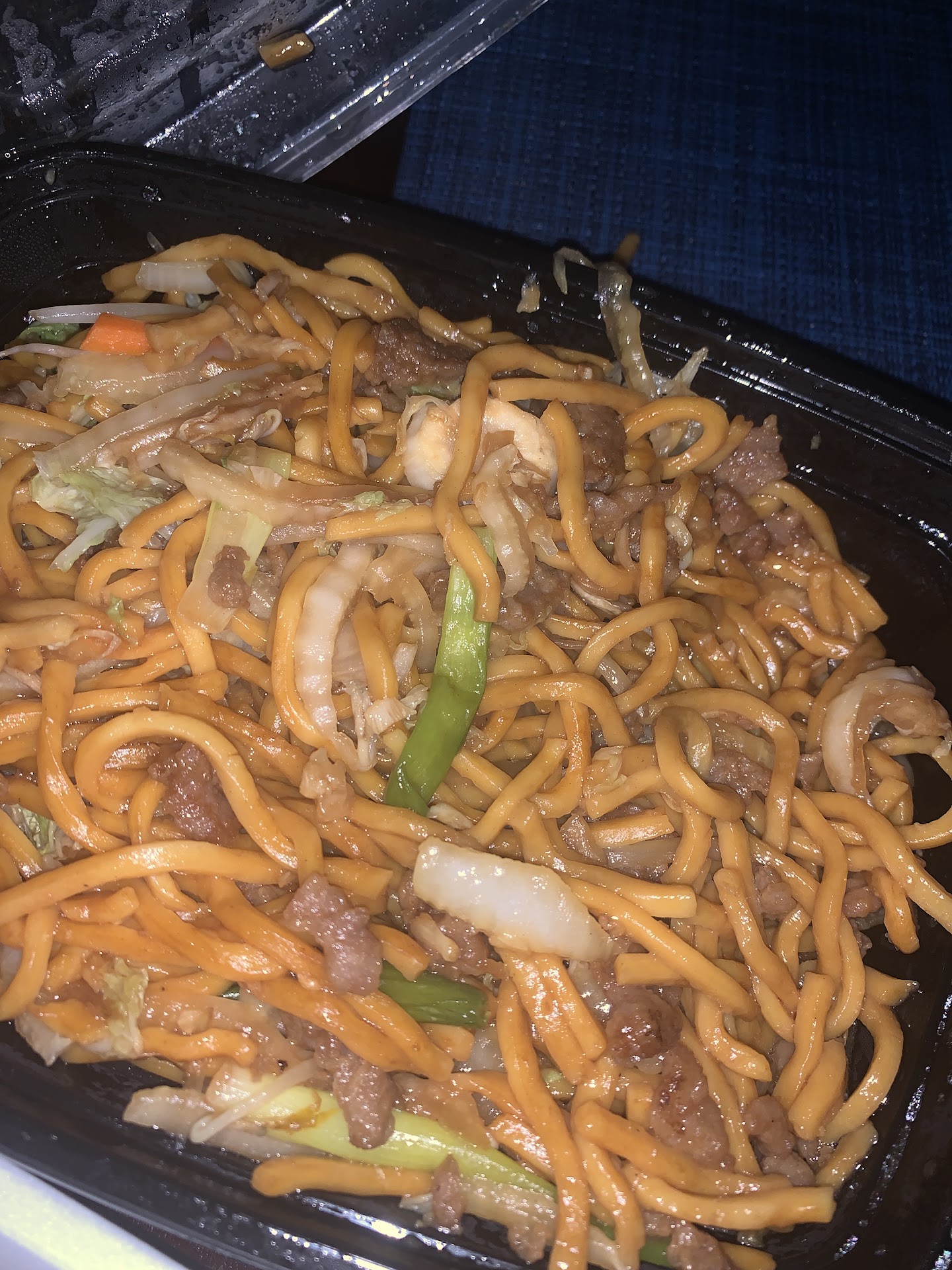 Order: Dinner combination pepper steak with pork fried rice and egg roll. With added appetizer of Teriyaki skewer.