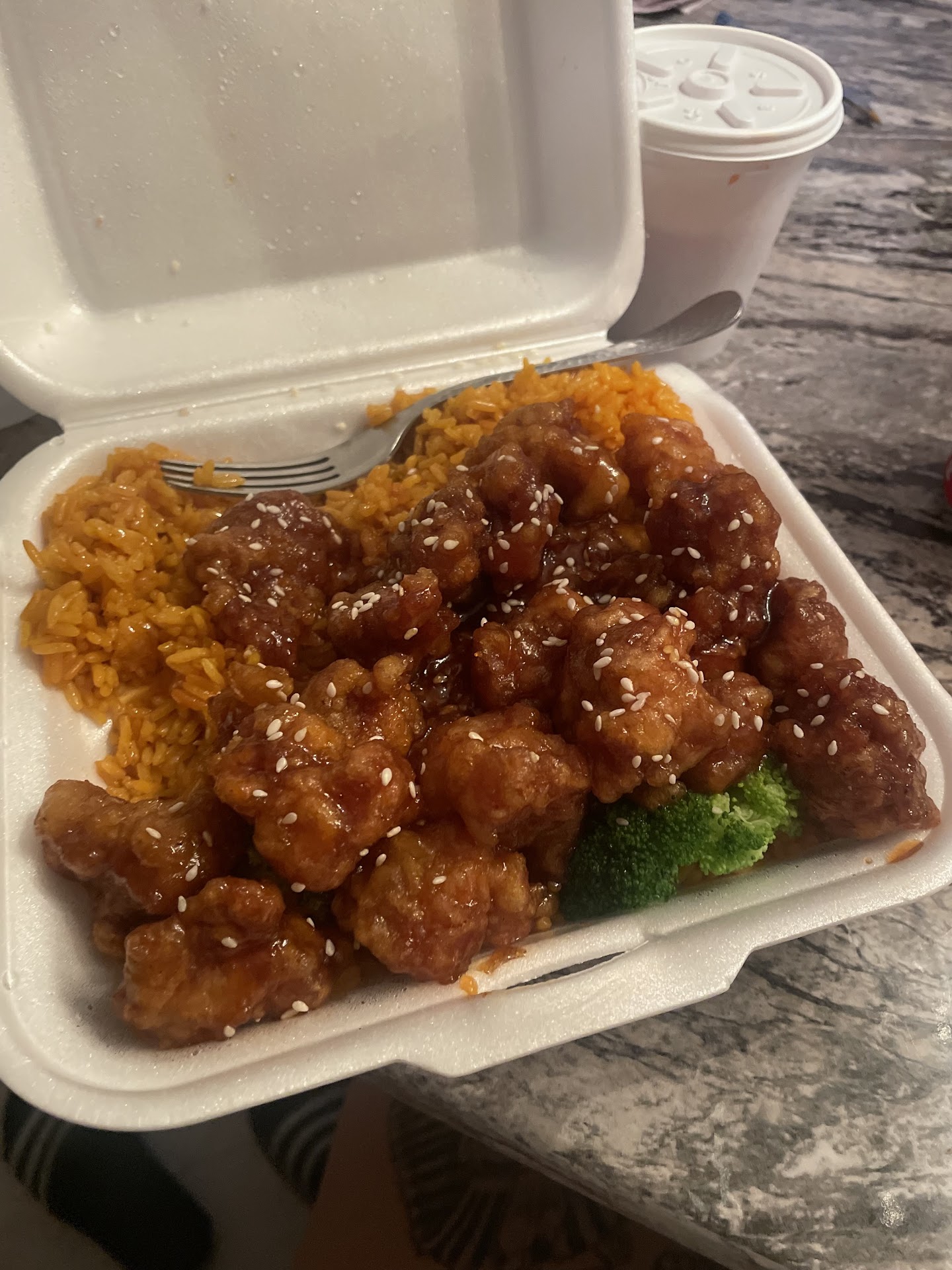 Read moreThe food here is really good. I've stopped eating Chinese food for a while because a lot of these Chinese places rice flavorless, chicken is on cat meat and almost everything is soggy not fresh. My coworker suggested this restaurant and I'm glad she did. I ordered the orange chicken and vegetable fried rice. The chicken was absolutely delicious it was not soggy at all. I'm a texture eater and it was really crispy with that nice orange glaze. The rice had just the right amount of vegetables and had flavor. The second time I came I ordered the honey garlic chicken but, I'm not a fan of breaded chicken because sometimes they have that doughy taste but this one didn't it tasted good as well but we'll stick to the orange chicken next time. The chicken wings here...