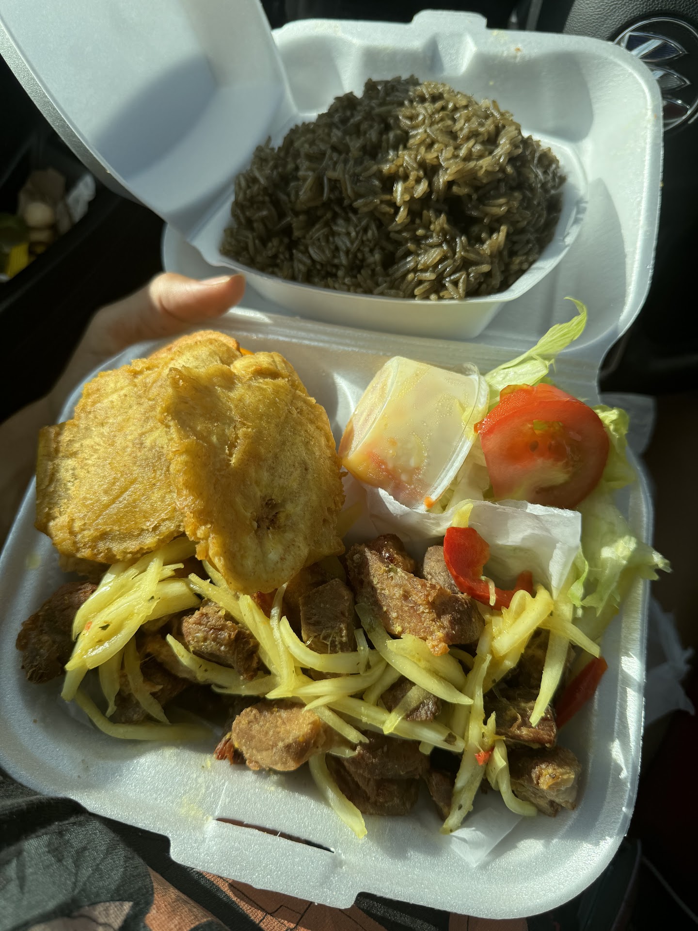 Read moreI called in my order she said 5 minutes but when I arrived I had to wait an additional 16 minutes. I'm not sure if I placed an order for Beef Jerky or Griot! Griot was fried way to hard I'm almost sure it could've been used as a weapon if I threw it at someone . Rice was crunchy like chips. And the plantain was hard as a rock. I eventually threw away that $17 plate. A complete waste of money. If I could give zero...