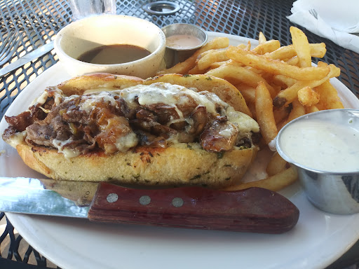 This was our first time here. We were seated immediately event though the full parking lot and space in front were full. They have a large shaded patio area out back so I think that is where most patrons were as the inside wasn't not full. This did delay our meal a little. Had we ordered appetizers the time would have been filled with that but we didn't. We were not upset at the time delay since we could see everyone was hustling. Our waitress (name starts with an M -- couldn't hear her) was really nice and even though she was busy she always stopped by to see if we needed anything.