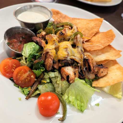I had the charbroiled chicken salad. It was much like a chicken fajita taco salad. (chicken, green peppers, onions, salsa, fried tortilla pieces, cheese, ranch.) My thoughts on the salad would be branch out from romaine with a mix (too easy to get stuck with pieces with hard ribs that are bitter by themselves) and diced tomatoes rather than cherry tomatoes that I have to chop up in order to eat. Corn and black beans would be lovely too. It was nice to be able to add the salsa for flavor rather than the chicken being overwhelming.