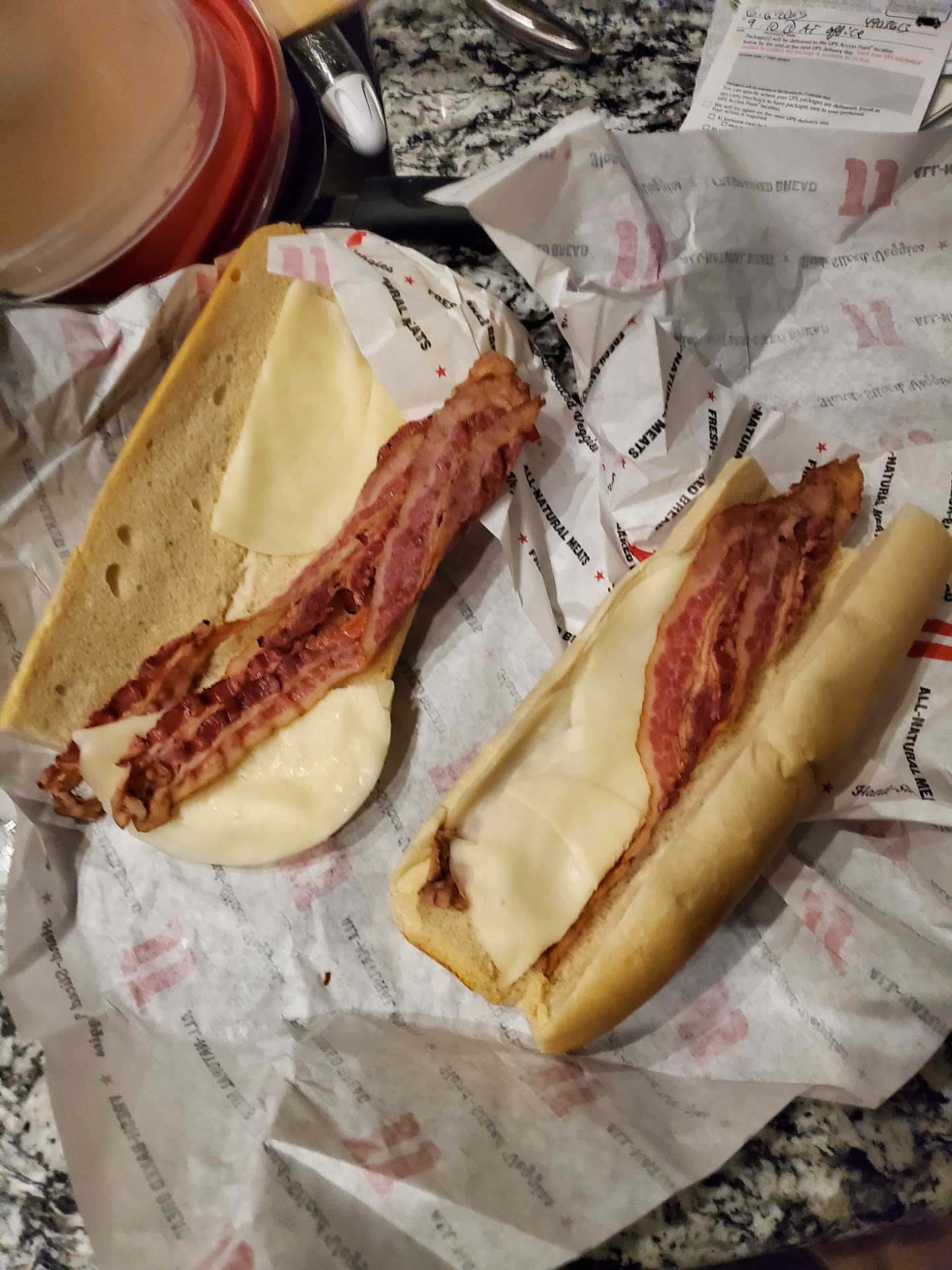 Had multiple fine experiences getting food here, but today I ordered 3 slim 5 sandwiches. For anyone not aware, slim 5 is just a #5 with no veggies. So still meat and cheese. The cashier asked me what I thought was a weird question: "do you want cheese?" I said yes (I also added bacon) I get home and open the sandwiches to see that the sandwiches were made as shown in the picture. Just bacon and cheese. If I wanted a bacon and cheese sandwich I coulda made a whole bunch more for the same price if I bought the ingredients from the Walmart 3 minutes away. Incredibly disappointed. I'm guessing it was a new employee who made this, so I don't necessarily blame him, but there was an employee who appeared to be more experienced. I clarified multiple times that I wanted three slim 5's add bacon. I used to work in the food service industry, and if I ever saw a weird order (like cheese and bacon) I would ask the customer to verify. If the store doesn't reply here, I'm gonna record opening the other sandwiches, show the video to the manager on shift, and ask for a refund. Hopefully they at least...