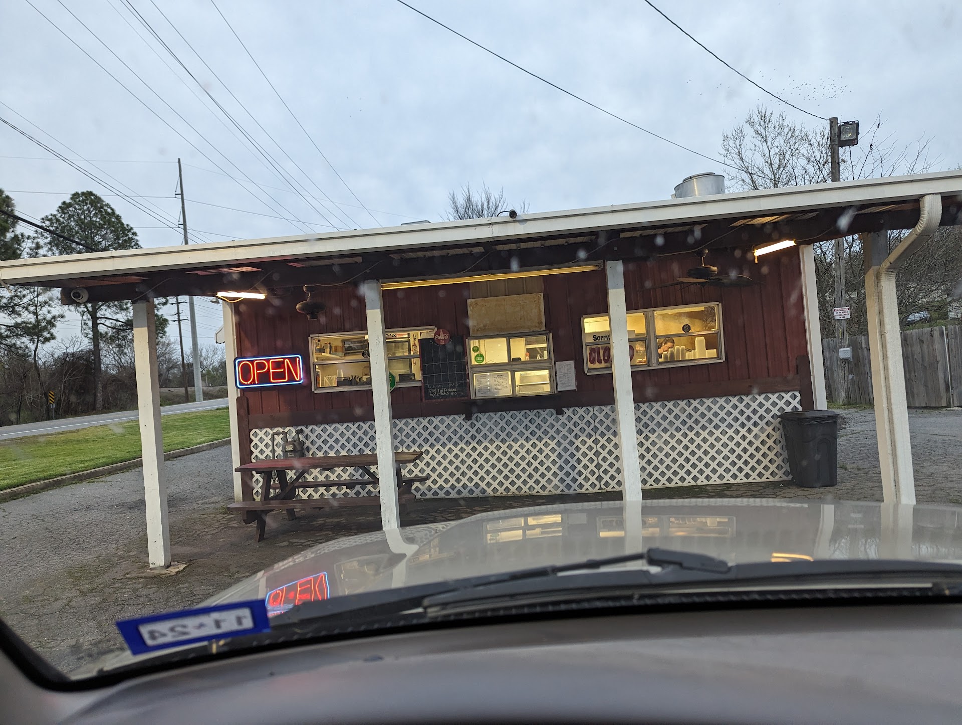 Ā Ā Ā Read moreWalk right up, place your order, and a few minutes later... you're no longer hungry. Just driving by, you know this place is going to be good, and they didn't disappoint. The pulled pork sandwich, fries, and a drink rang in at a whopping (/sarc) $7! There's a few picnic tables outside to use when the weather's right, but there's plenty of parking to sit and dine if it's not.