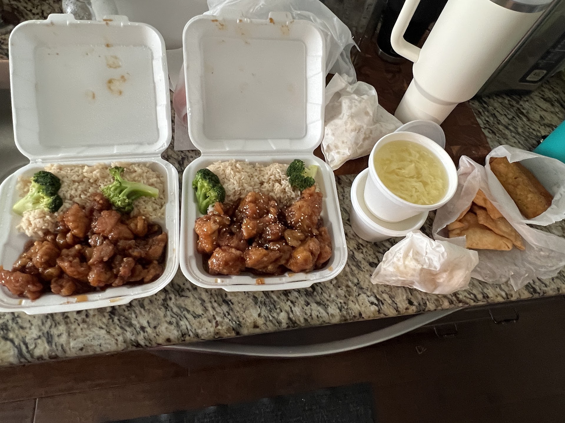 If you are looking for the light stir fried type Chinese dishes with a meat, veggies, and sauce, this is not your place. We ordered 3 dishes, a shrimp, a pork, and a beef dish and in all 3 the small pieces of meat were encapsulated in a thick heavily battered and then fried coating. Each little okra size piece was 3/4 fried batter and 1/4 meat. At first glance, 2 of them really looked like small fried okra but with a smooth fried coating instead. Nothing light stir fried about any of the 3 dishes. We felt as if we had each eaten a half dozen donuts when we got up from the table. Maybe it was a fluke and not all their dishes have small meat pieces in a heavy batter like this, but ask if thatās not your what you are looking for. We were pretty disappointed when we got home and opened up the boxes. The flavors and taste was good though. See photos. The dishes were Coconut Shrimp, Sweet n Sour Pork, and...