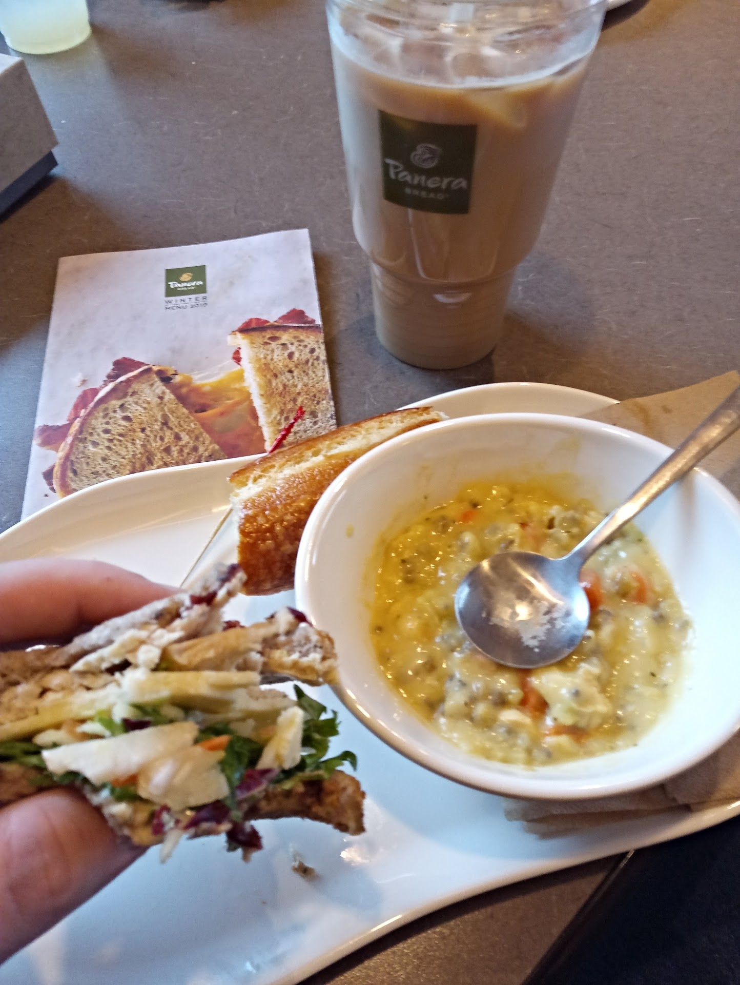 Just left there and have to say I am incredibly disappointed. I'll give them a 1 star because the soup is always good, but that's where it ended for me and I have always been a long time customer of Panera where ever I have lived. My complaint is that, yes, I may have ordered the wrong sandwich, or rather, the sandwich I thought it was but they had apparently changed the recipe on it and had no explanation on what came on it. I didn't think to ask because it was named the same thing it had been for years. That being said, I asked for no onion, and apparently the new recipe doesn't come with it on it, but no one thought to tell me what which would have alerted me to my mistake. Once I got the sandwich I was of course disappointed because it wasn't what I thought I had ordered, normally I would have eaten it anyways except this had some odd mixture of cut up olive on it and I can't stand the taste. So I asked the employee who delivered our food if I could switch it out, he was almost reluctant and basically argued with me when I mentioned it had olive which I didn't like, told me at first that it didn't have olive on it and then admitted that he didn't know what the mixture was. How do you not know what is on a sandwich you sell? He didn't seem new, was actually training the girl on the register when we ordered. Eventually he took it back and brought me the same sandwich as my boyfriend which I said would be fine, it was decent but definitely lacking on meat. What really upset me the most was they were talking at the sandwich prep station very loudly about me and the sandwich I ordered, laughing and making fun of me. It was disrespectful and rude. I will never return there, and that saddens me as I love the...